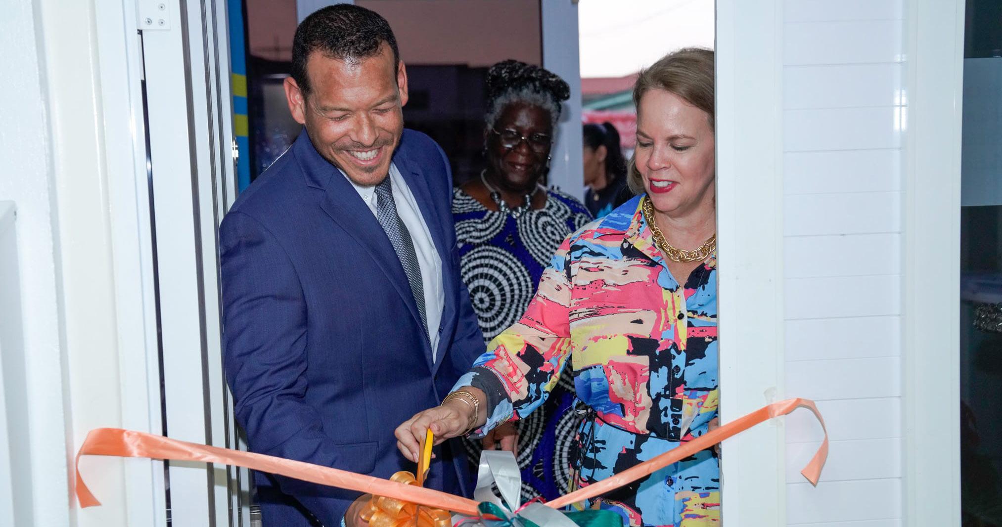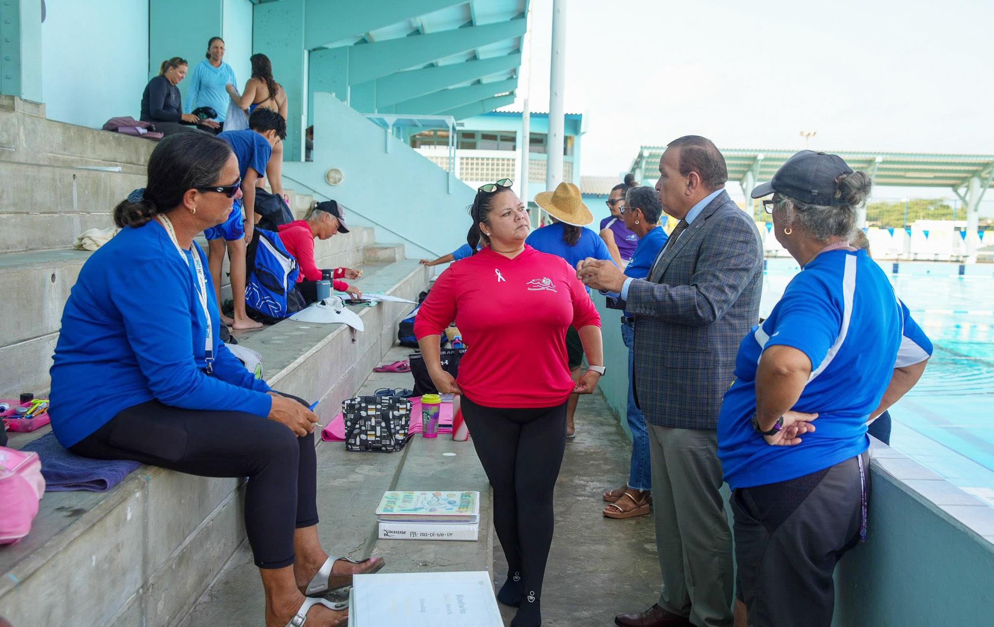 Diaranson mainta, Minister Endy Croes hunto cu directora di Departamento di Enseñansa (DEA) Sra. Anne Marie Proveyer - Groot a realisa un bishita oficial na Piscina Olimpico Roly Bisslik na Savaneta, unda cu a reuni cu Sr. Andy Gomes, kende ta dirigi e proyecto di Landamento Escolar.