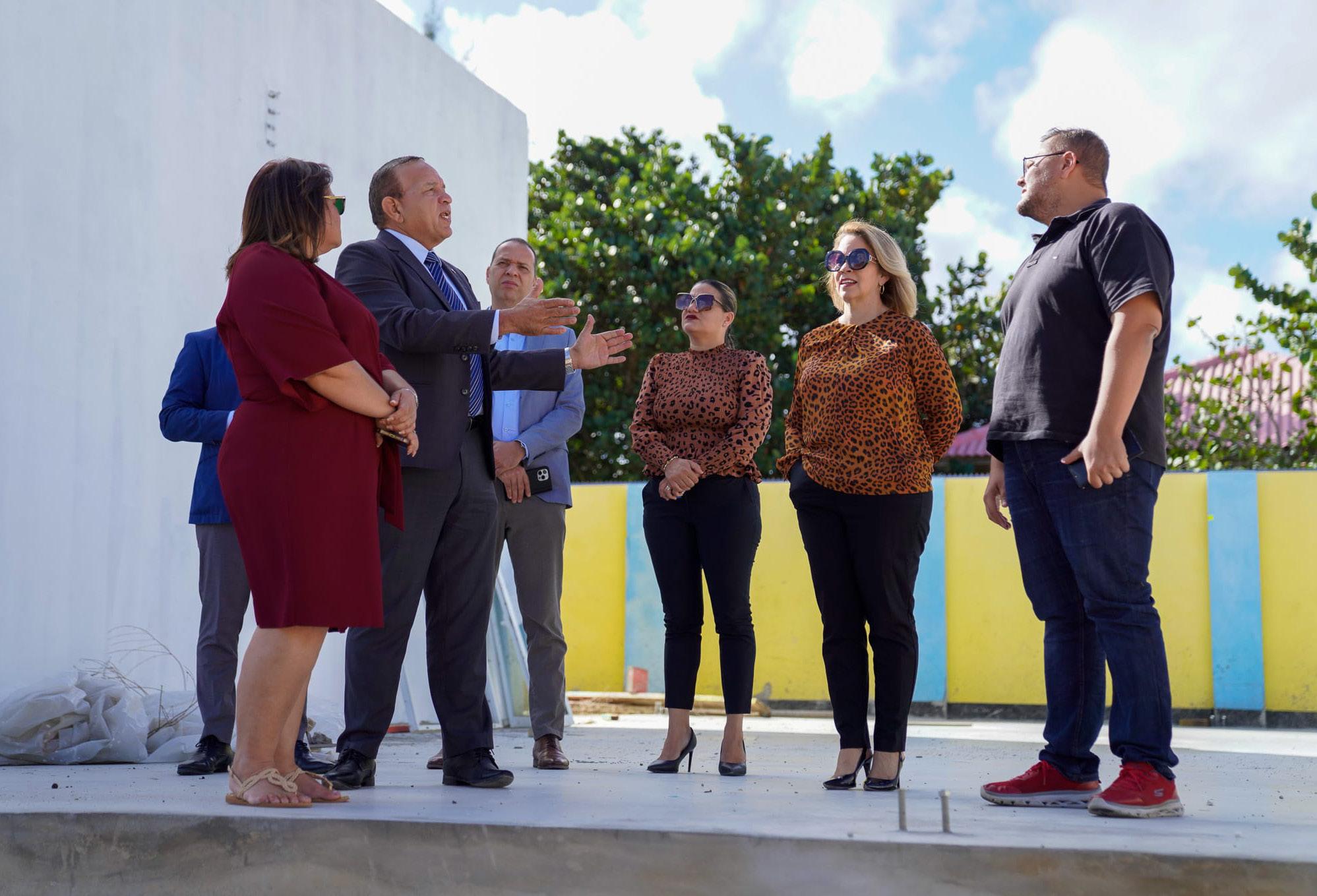 Diamars mainta, Prome Minister Evelyn Wever-Croes, Minister di Enseñansa Endy Croes y Parlamentarionan Shailiny TrompLee, Darlaine Guedez-Erasmus, Marcos Berlis y Ricky Hoek a bishita St Aloysius School pa asina por wak e avance di e trabounan haci pa cu e proyecto di renobacion di e scol.