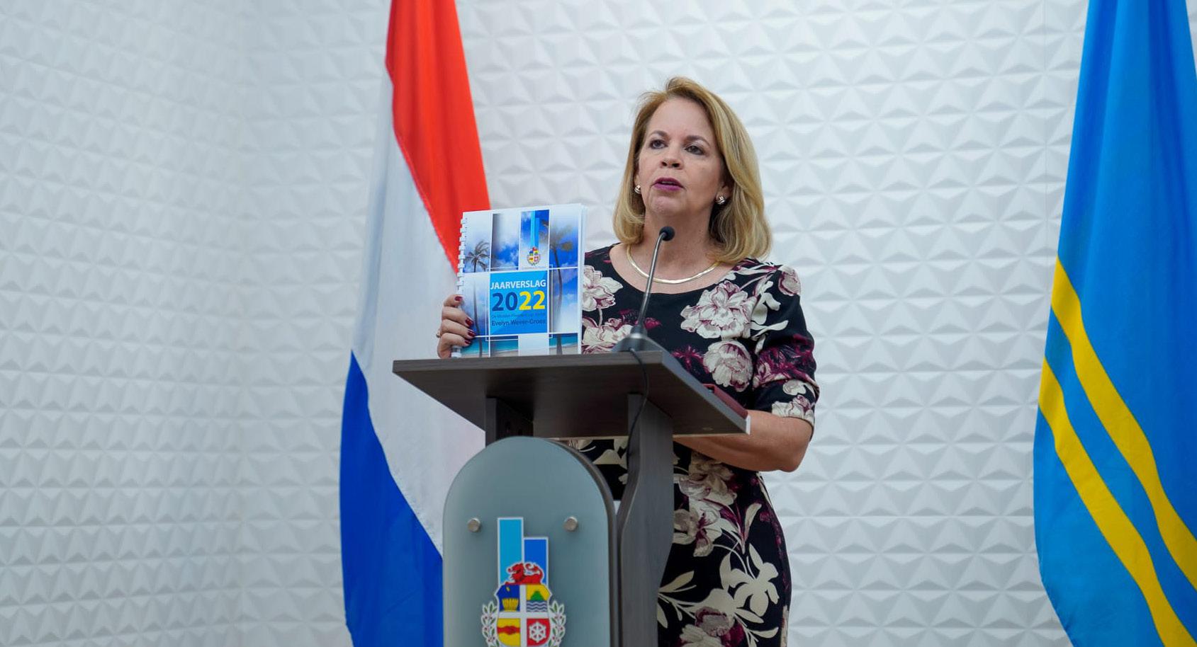 Dialuna mainta durante conferencia di prensa di Gobierno di Aruba, Prome Minister Evelyn Wever-Croes a anuncia cu e Relato Anual 2022 di su ministerio a wordo publica. Prome Minister a splica e contenido di cada capitulo. E prome capitulo ta contente un relato amplio di relacionnan den Reino, relacionnan exterior, SDG’s, genero, siguridad nacional, Proyecto Veiligheidshuis, calamidad, crisisnan cu tawata presente den 2022 entre otro Covid y e problematica humanitario na Venezuela cu a causa cu na Aruba nos tin problematica di asilo, comunicacion y e diferente comisionnan cu e ministerio ta atende cu ne.