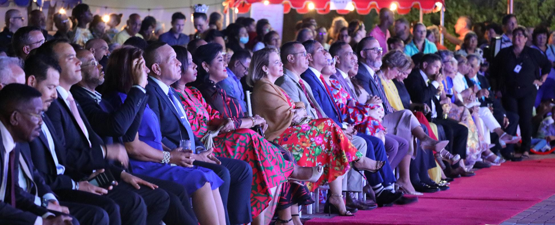 Minister di Cultura, Xiomara Maduro, den nomber di Gobierno di Aruba, ta gradici tur esnan cu a subi tarima di Plaza Libertador Betico Croes pa duna homenahe y rindi honor na nos Himno y Bandera. ‘Danki pa engrandece nos cultura atraves di boso arte y danki pa stima nos Pais’ e mandatario ta finalisa bisando.