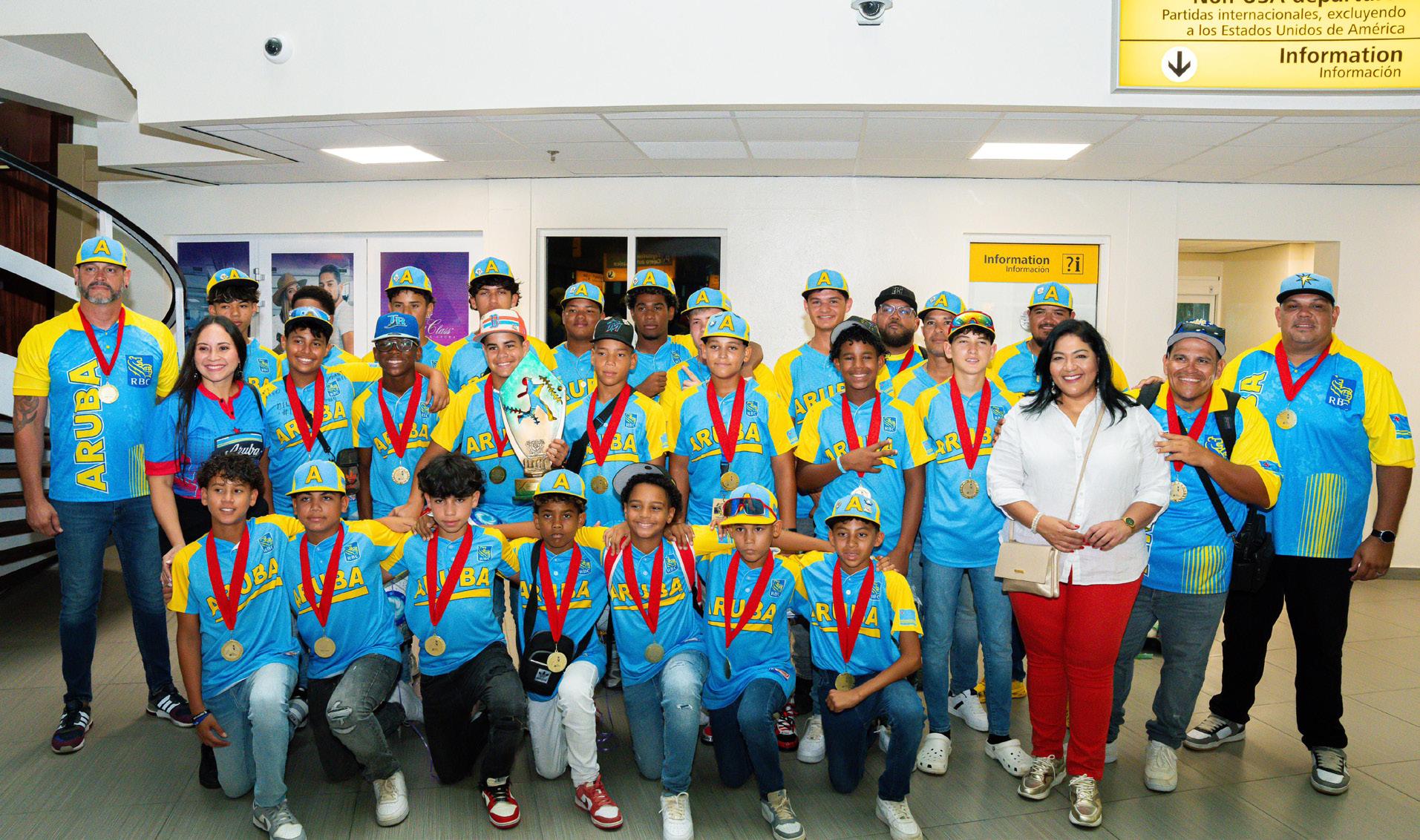 Pa e ocasion importante aki, Minister Maduro hunto cu sr. Rafini di RBC a bisti ful e ekipo cu un bunita medaya ofreci pa Minister di Deporte sr. Endy Croes. Despues di a saca potret oficial, e ekipo a topa cu famia y amigo cu a yega airport pa yama nan bonbini bou di e tononan di brassband. Cu escort di Polis, e Campeonnan di Little League di Caribe a bay haci un recorido pa despues disfruta di un dushi treat pa celebra nan triunfo.
