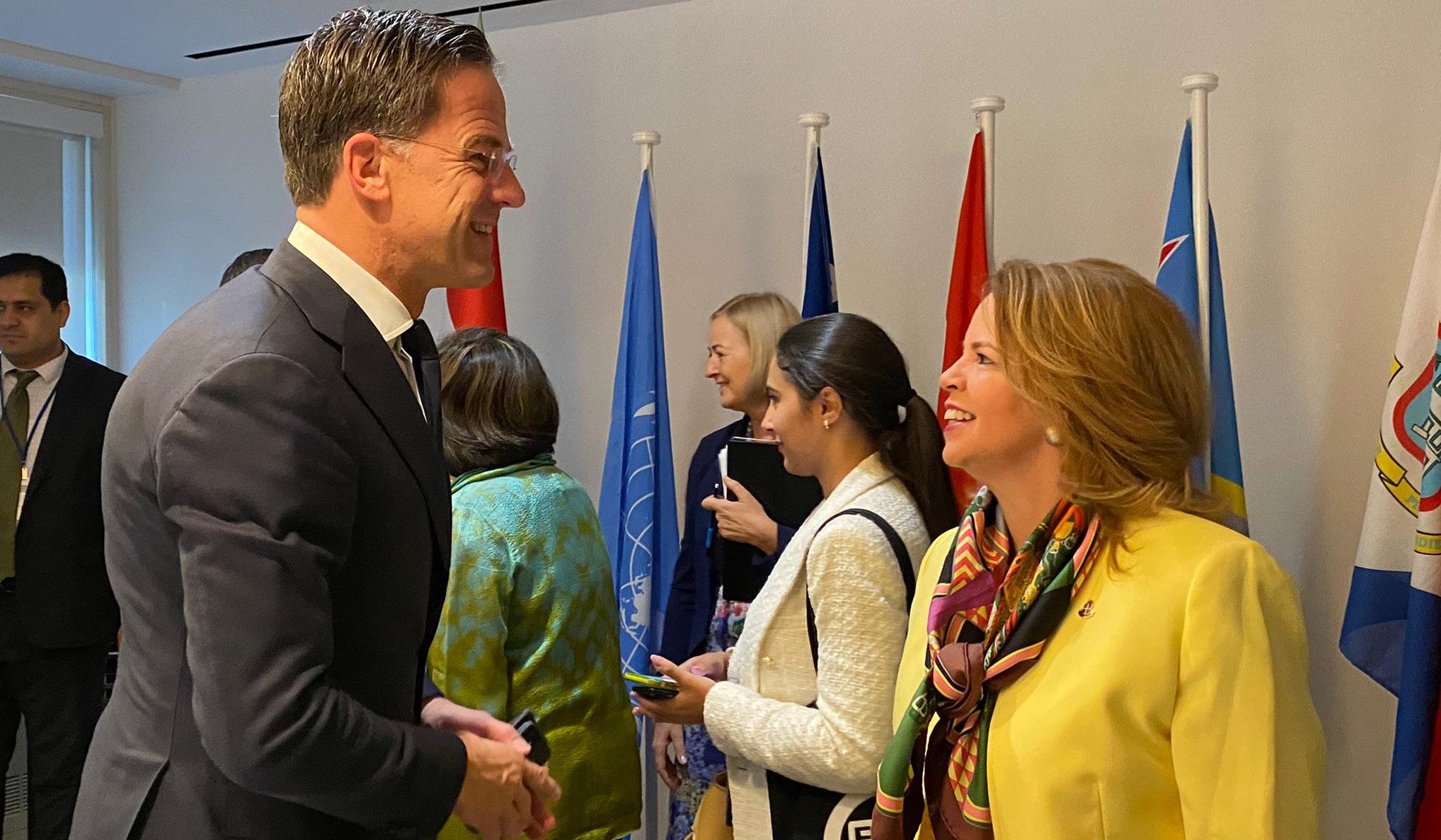 Prome Minister Evelyn Wever - Croes a atende un evento di Reino Hulandes riba e tema di awa. E conferencia a wordo organisa pa Minister Liesje Schreinemacher di Buitenlandse Handel en Ontwikkelingssamenwerking di Hulanda y Prome Minister di Hulanda tambe tabata presente. Prome Minister Wever - Croes na e ocasion a splica di e importancia di awa pa Aruba y importancia pa traha hunto.