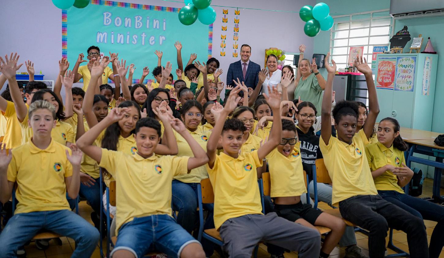 “Mi ta hopi contento y ta agradeci e cabesante, docentenan y alumnonan di Pius X School pa e caluroso bon bini”, Minister Geoffrey Wever.