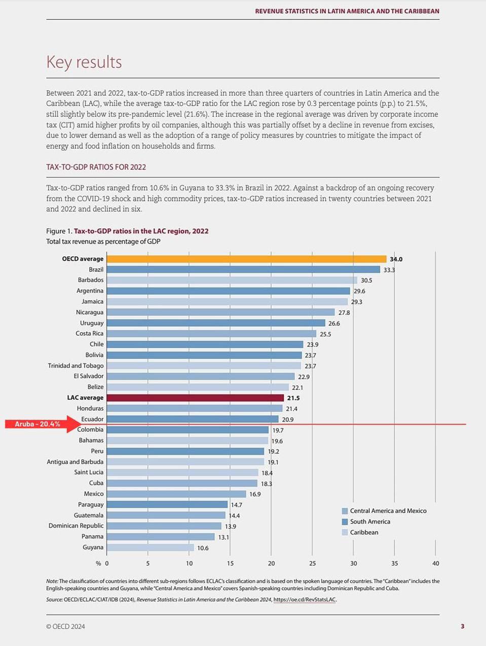 E mandatario a sigui splica cu OECD cu ta e autoridad riba tereno fiscal internacional, a publica cu pa aña 2024 e peso fiscal pa paisnan den e region Latino Americano y den Caribe, ta na un promedio di 21,5%. Esaki ta demostra cu e peso fiscal di Aruba cu ta rond di 20%, ta cay bou di e promedio di peso fiscal den nos region. Pues Aruba su peso fiscal no ta asina halto manera e Parlamentario ta critica.