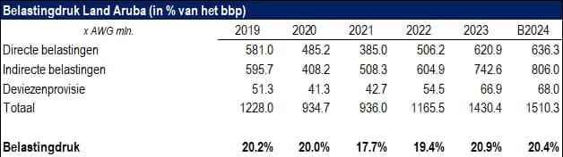 Minister Maduro a splica cu na Aruba e peso fiscal den aña 2024 ta na 20,4%. Por mira cu esaki ta na e nivel di aña 2019 cu ta prome cu e pandemia. Durante e pandemia e peso fiscal a baha na Aruba na 20%, 17,7% y 19,4%, ya cu Gobierno a duna Alivio Fiscal 1 y 2 cu a yuda baha e peso fiscal den añanan 2020, 2021 y 2022. Compara cu aña 2023, por mira un rebaho den e peso fiscal den aña 2024.