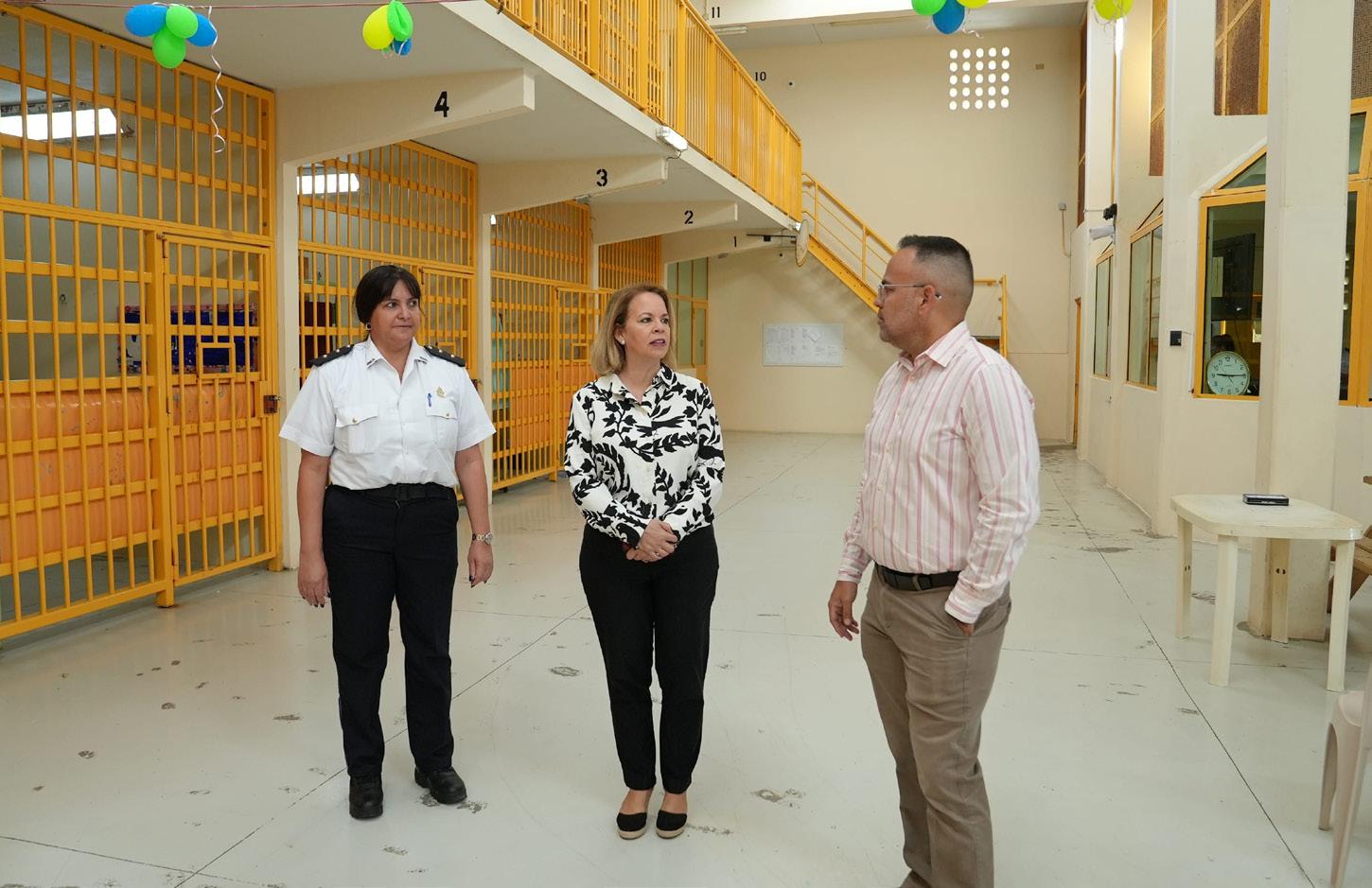 Na su yegada, Prome Minister Wever - Croes a wordo ricibi door di Director di KIA Gino Winklaar y Hefe di Vrouwenafdeling Brigitte van der Linde. Prome Minister a expresa cu a pesar cu cada un detenido por ta cera pa diferente motibo, e deseo ta pa nan por ta ekipa pa ora nan sali, nan por participa den sociedad y contribui na comunidad.