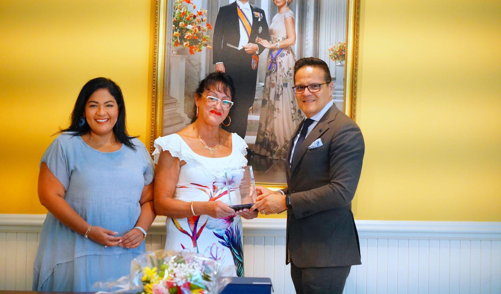 MINISTER MADURO TA FELICITA SRA. FABIA WERNET CU SU 35 ANIVERSARIO COMO EMPLEADO PUBLICO DI PAIS ARUBA
