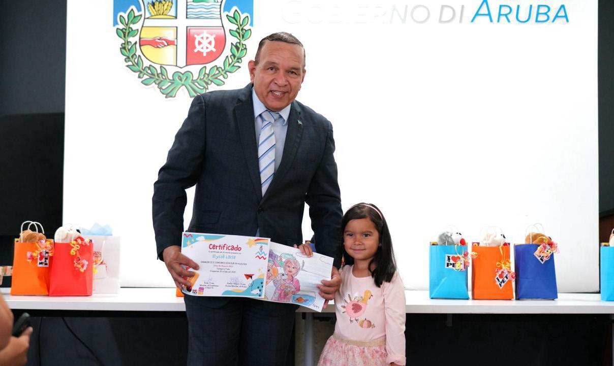 Un exito total! Muchanan di kleuter tabatin te dia 5 di december pa entrega nan pinturanan y dia 18 di december ya caba a anuncia e 15 ganadonan riba e pagina di Facebook di Stima Mi Mascota, riba e pagina di Facebook di Gabinete Wever-Croes y tambe via e-mail di tur scol. “Nos a dicidi di warda pa Pasco y Carnaval pasa, pa por duna e alumnonan nan momento special”, Minister Endy Croes a comparti. Dia 23 di februari tur 15 ganado a wordo invita pa bini Bestuurskantoor pa nan ricibi nan regalito. Ademas di e 15 muchanan y nan mayornan, nos Minister-President Evelyn Wever – Croes tambe tabata presente y tambe Señor Armando Goedgedrag cu ta esun cu a diseña e imagen cu e muchanan a kleur pa ambos concurso “Stima Bo Mascota” 2021 y 2023. Tambe 3 representante di scol a bini pa ricibi un certificado di reconocemento pa e gran participacion na e concurso educativo na bienestar di nos mascotanan. Trupial kleuterschool a keda na prome luga cu 89 participante, Mon Plaisir kleuterschool y Rayo di Solo kleuterschool a comparti luga number 2 cu 71 participante cada uno.