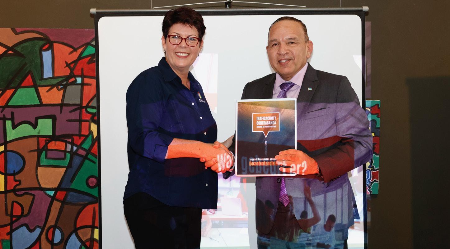 MINISTER ENDY CROES A PRESENCIA LANSAMENTO DI E PROYECTO PILOTO DI PAKETE EDUCACIONAL CONTRA TRAFICACION Y CONTRABANDA DI HENDE