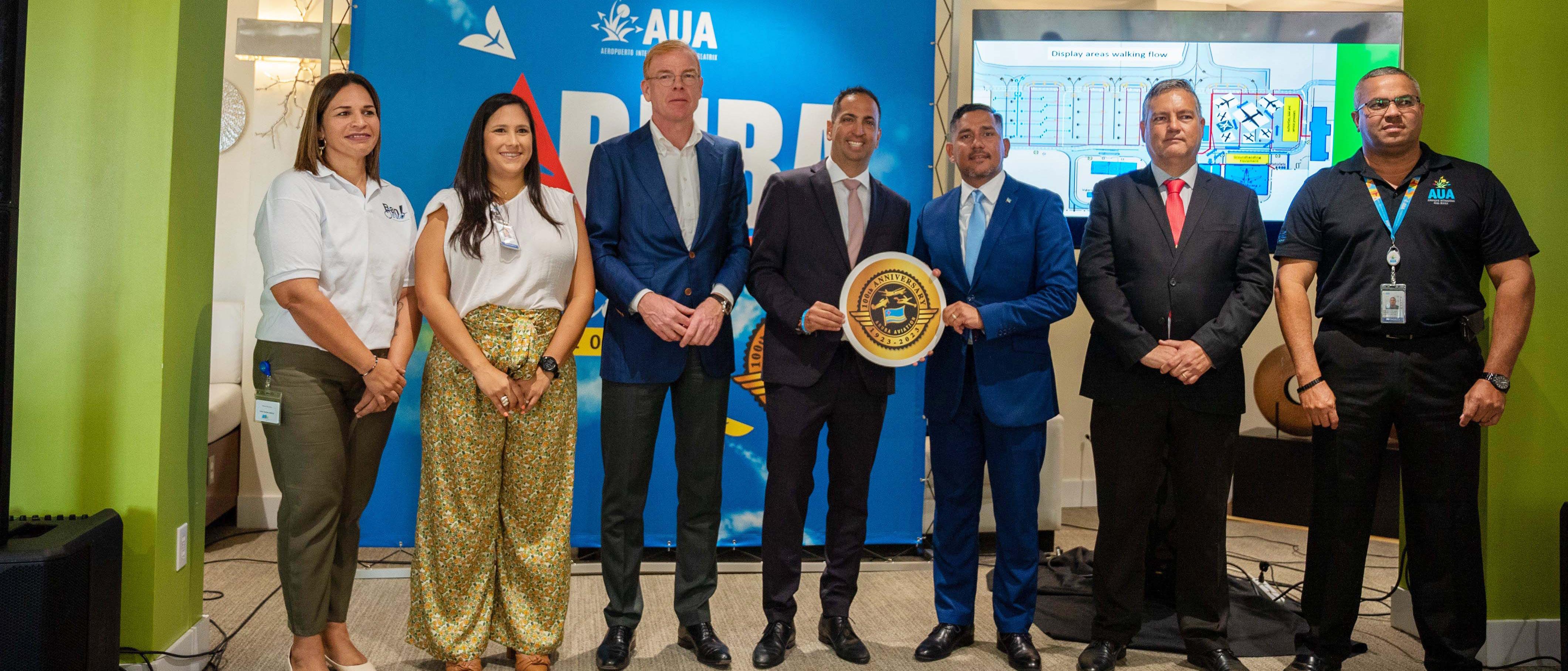 Un feliz mainta na colega minister Arends, CEO Meijs di aeropuerto, ehecutivonan di AAA y tambe miembronan din prensa presente.