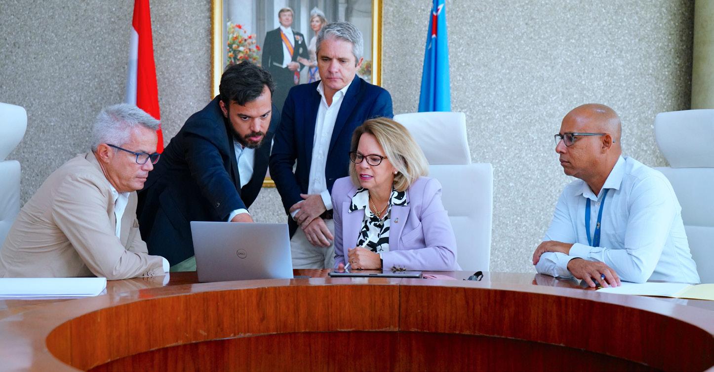 Prome Minister Evelyn Wever-Croes ta gradici Minister Plenipotenciario señor Ady Thijsen y representante di Tijdelijke Werkorganisatie Aruba, señora Indra Zaandam pa e bon trabou cu nan ta haciendo den cuadro di Aruba su trayecto di recuperacion. Tambe Prome Minister ta sumamente gradicido na señor Van Rijn pa su tempo y e informacion duna. Den transcurso di dianan e delegacion di Pais Aruba lo ta reuniendo cu diferente otro experto riba e tema aki.