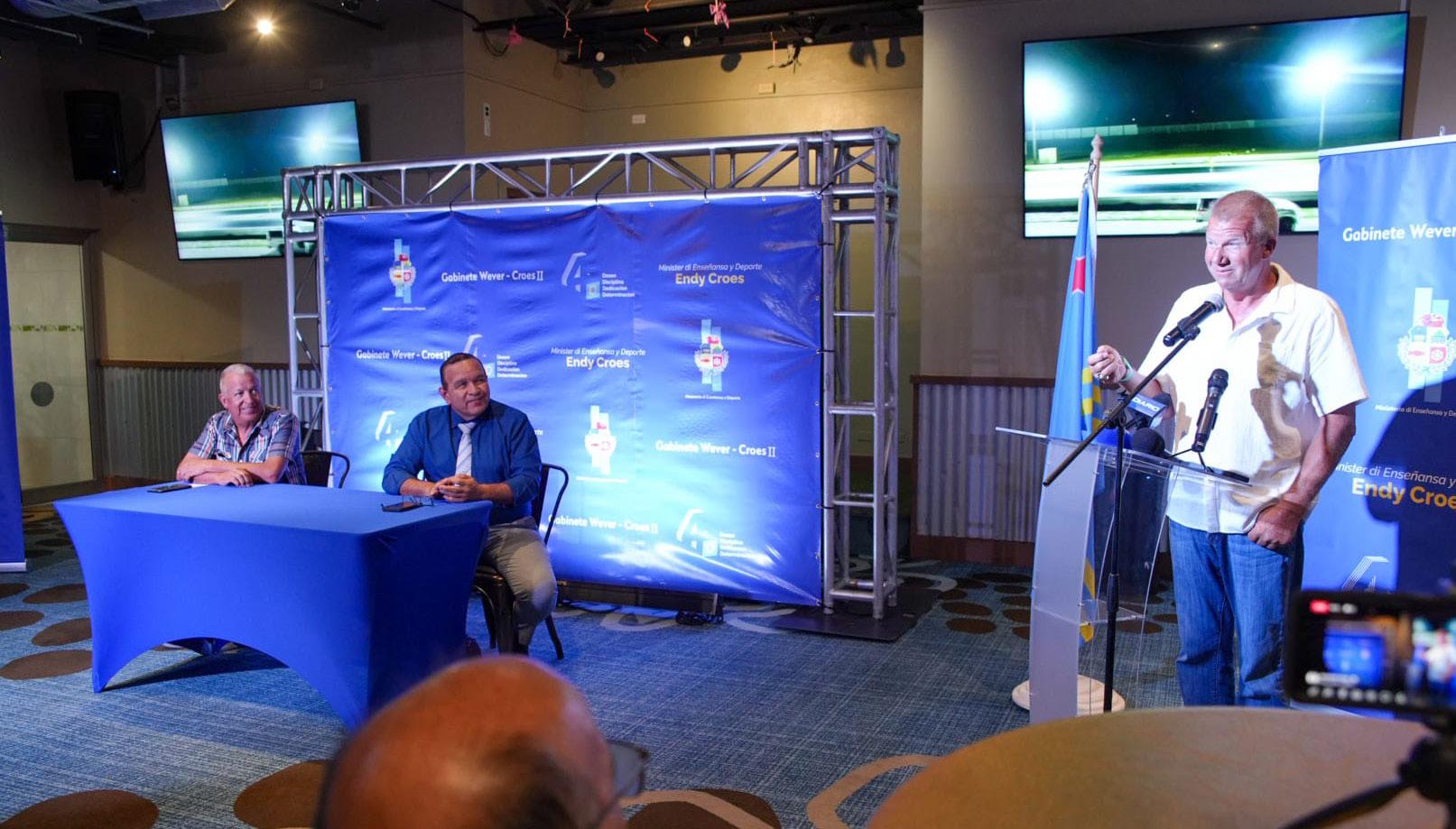 Diabierna ultimo, a tuma luga Conferencia di Prensa di Gobierno di Aruba y “Meet & Greet” cu invitado special Sr. Kurt Johnson den e sala di Double Down Grill Restaurant na Eagle Resort. Durante e conferencia di prensa, Minister di Enseñansa y Deporte Endy Croes hunto cu Sr. Joy Werleman di Arubaanse Bond van Motorsport (ABM) y Sr. Kurt Johnson a informa Pueblo di Aruba tocante e desaroyonan di renobacion di e pista di Palo Marga. Sr. Kurt Johnson di e compania profesional di Merca Total Venue Concepts (TVC) ta un experto den e preparacion di pista di drag race na Merca y rond di mundo.