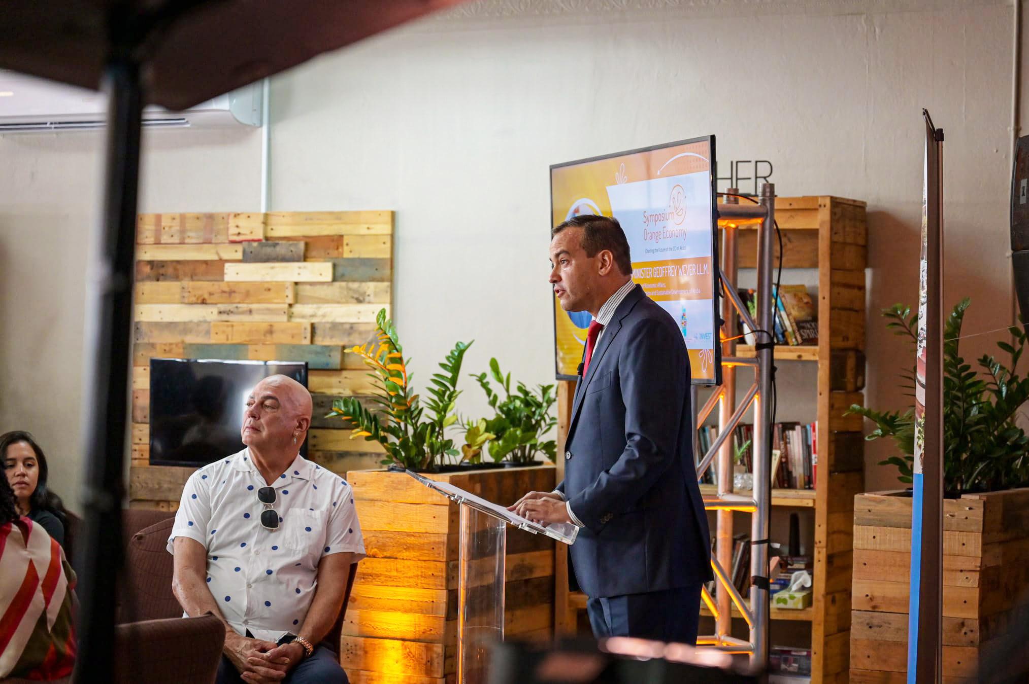 E industria creativo tambe conoce diferente reto ora ta papia di eherce actividad creativo comercialmente. Tambe ta reconoce cu tin oportunidadnan existente na Aruba. Esaki tabata puntonan cardinal cual a dialoga riba dje durante e 'Orange Economy Symposium'. Minister Geoffrey Wever conhuntamente cu un panel diversifica di stakeholders y artistanan local a discuti riba e tema di e potencial y necesidadnan di e industria creativo.