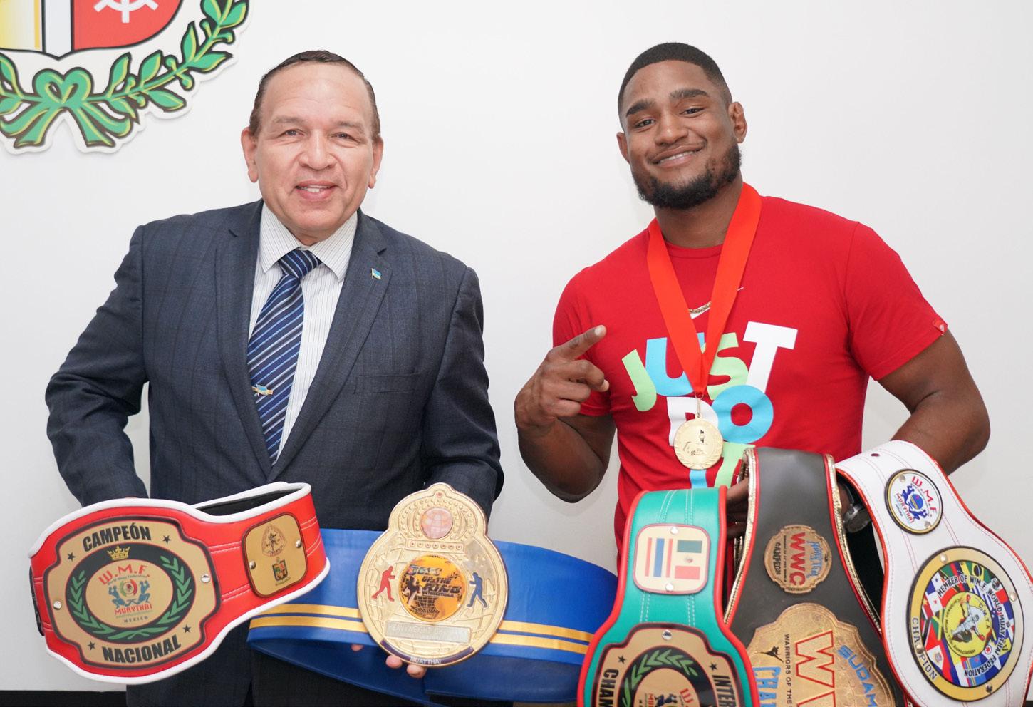 Siman pasa, den un esfera ameno Minister Endy Croes a ricibi bishita di e atletanan cu a bringa den e campeonato internacional di WWC “Battle of the Grand Champion Warrior of the World Championship” na Quito, Ecuador. Presente tambe e atardi aki tabata presidente di Muay Thai, sra. Rutmila Gonzalez, sr. Stacy Hassell y sr. Roony Boye. Algun siman atras, e atletanan di Aruba a haci un tremendo papel den e campeonato Muay Thai Sur Americano unda a logra conkista varios titulo y e faha di campeon.