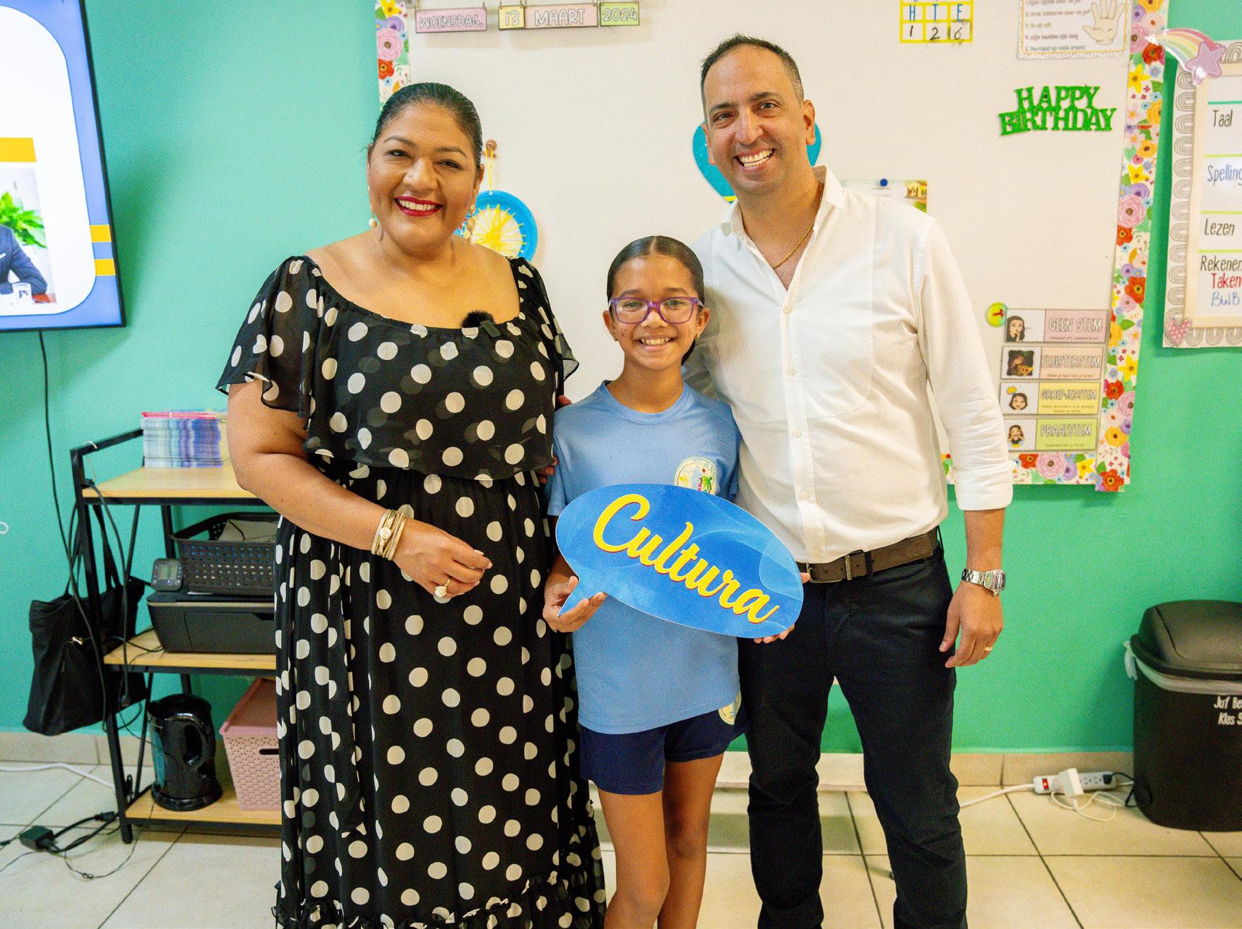 En conexion cu e celebracion di nos dia nacional, nos Himno y Bandera, Minister Xiomara Maduro a bishita Colegio Felipe B. Tromp y St. Annaschool. E biaha aki, den compania di Minister Dangui Oduber cu a compañ'e den e bishitanan den e bario di Noord.