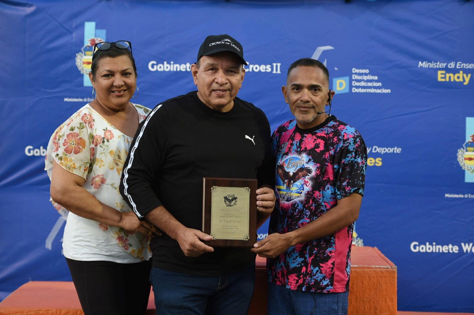 Diasabra ultimo, na stadion Nadi/ Crismo Angela na Santa Cruz a tuma luga e di cuatro edicion di e Eagle in Color Walk & Run 2024 organisa pa Eagle 297 Runners Association. Pa tres aña consecutivo e Eagle in Color Walk & Run a sali evento deportivo di aña. E di cuater edicion a conta cu alrededor di 500 participante, tanto mucha como adulto a inscribi pa participa den e evento di coremento y canamento. E participantenan a core den e barionan di Sabana Grandi, Rooi Bosal y bisindario. Minister di Deporte Endy Croes tabata presente pa duna sosten na e participantenan y pa contribui na e gran evento deportivo aki. E mandatario di Deporte a hiba palabra, deseando tur coredo hopi exito y a felicita e organisadonan di Eagle in Color Run & Walk pa organisa un bes mas un excelente actividad deportivo. Den nomber di Eagle 297 Runners Association y tur coredo, Sr. Michael Maduro a sorprende Minister Endy Croes cu e reconocemento di