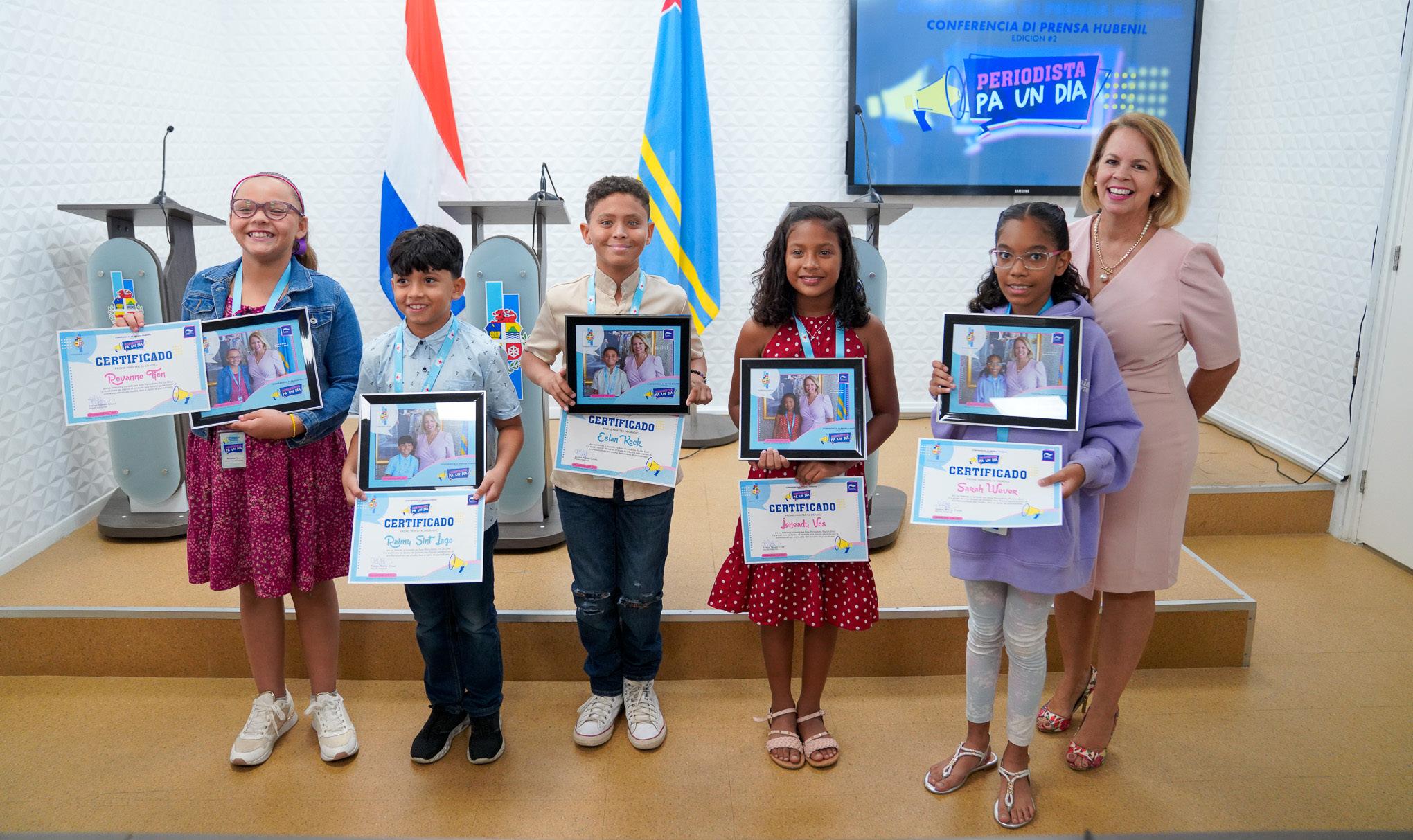 Prome Minister ta gradici tur esnan cu a haci ‘Periodista pa un Dia’ posibel y un exito. Danki tambe na señor Andrew Vrolijk pa su tempo pa splica nos muchanan mas di e trabou aki. Danki na e mayornan pa permiti nan yiunan participa y danki special na nos muchanan cu a participa.