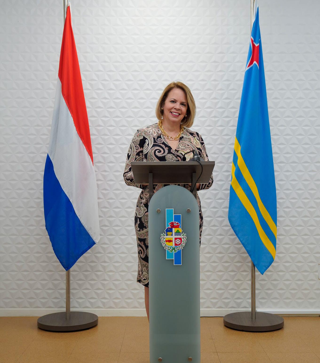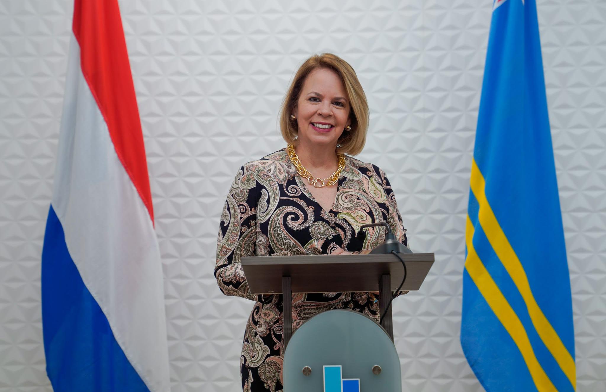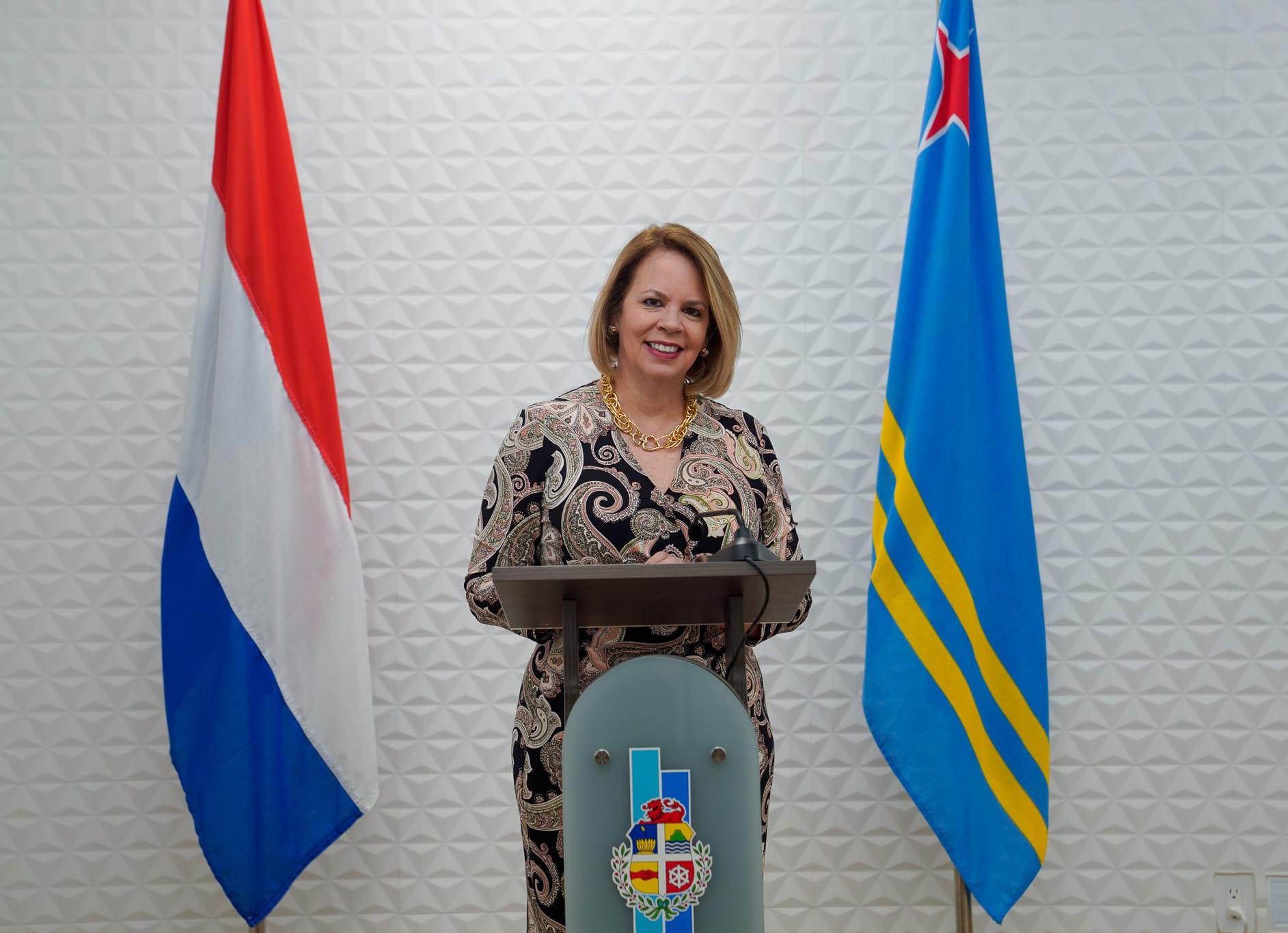 Minister Xiomara Maduro, den nomber di Gobierno di Aruba, ta duna un palabra di pabien na tur tres hubilario y ta gradicinan pa nan trabou haci pa Pais Aruba.