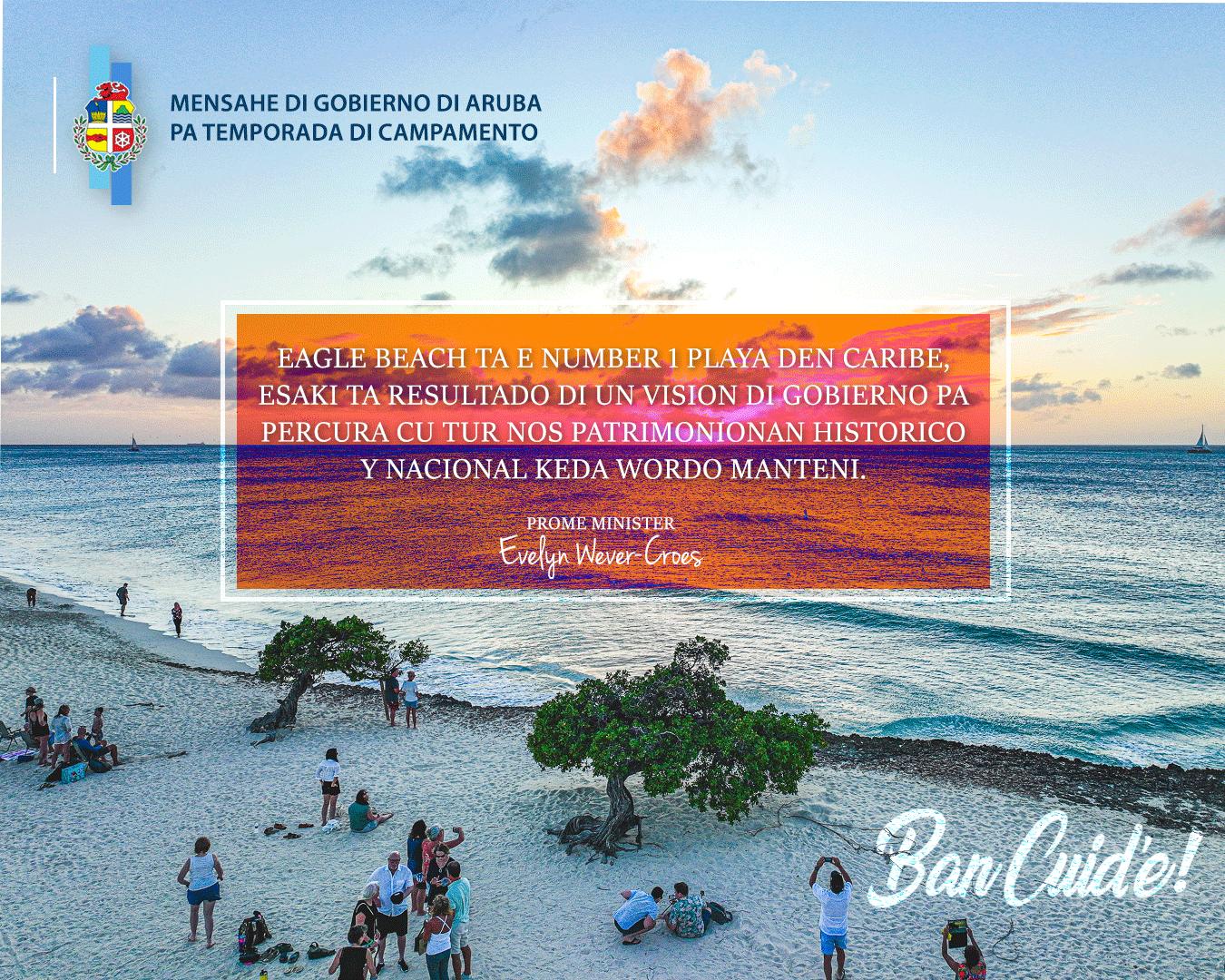 Dentro di poco nos ta drenta e temporada conoci na Aruba di campamento. Den cuadro di esaki, Prome Minister Evelyn Wever - Croes kier recorda comunidad riba e importancia di nos beachnan. Ban cuida nos naturalesa pa nos por gosa di dje pa hopi aña mas.