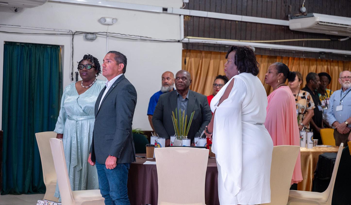 Pa marca e cuminsamento di e conferencia, gezaghebber di Sint Eustatius, Sra. Alida Francis a gradici tur cu tey presente y desvela e logo nobo pa e islanan. E logo aki a wordo diseña cu e ayudo valioso di Directora di Santa Rosa Aruba, Sra. Nathalie Maduro, y ta simbolisa e union y vision comparti di islanan di Caribe Hulandes.