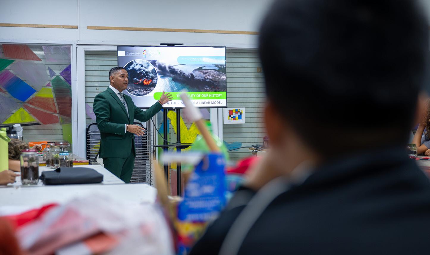 Ministerio di Naturalesa tabata un di e invitadonan pa e duna presentacion riba esfuersonan di Gobierno di Aruba. Durante e presentacion a ilustra imagenan di prome y despues cu a cera Dump Parkietenbos dia 1 di januari 2023. Despues di a opera durante 70 aña, causando polucion toxico den aire. Minister Arends a splica cu e cierre di Dump Parkietenbos tabata un paso crucial den e esfuersonan pa proteha e Aruba su medio ambiente. E planes den futuro ta pa converti esaki den un parke solar. E studiantenan a siña di cerca tocante e herarkia di maneho di desperdicio y con Aruba ta tuma paso pa procesa e desperdicionan di un manera mas responsabel y pa transiciona pa un economia circular.