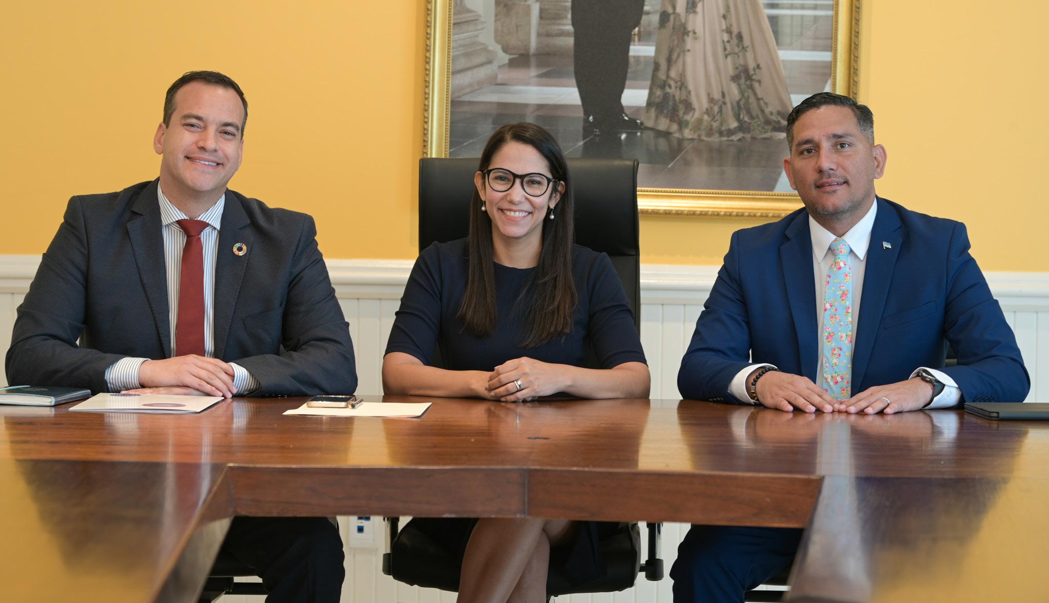 Minister Dangui Oduber ta gradici e Consul Generaal sra. Emmerink, e Secretaris Generaal sr. Huijts pa forma parti di e delegacion di Reino.