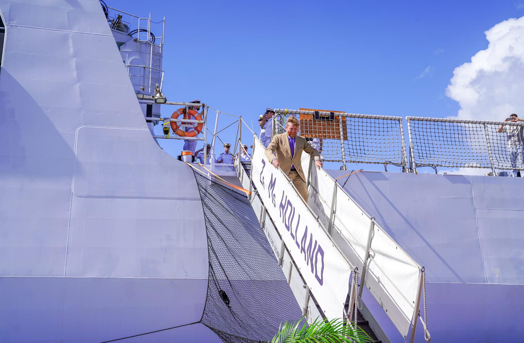 Despues di nan bishita cortico pero intensivo na Aruba, Rey Willem Alexander, Reina Maxima y Prinses Amalia a sigui rumbo pa Corsou cu boto di Marina Real. Na nan despedida, Prome Minister Evelyn Wever-Croes, den nomber di Gobierno di Aruba y den nomber di tur ciudadano, a gradici Famia Real pa nan bishita na Aruba.