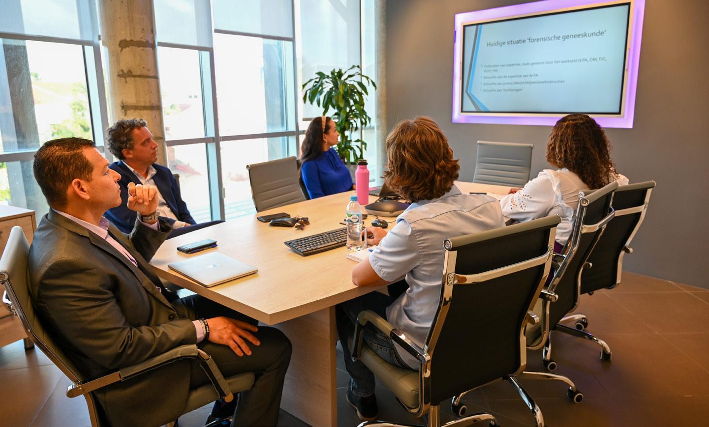 Recientemente, Minister di Husticia y Asuntonan Social Sr. Rocco Tjon a reuni cu dokter forensico Dr. Ricardo Scholten y e dokter forensico cu actualmente ta studiando den exterior esta Dr. Vincent Latour. Durante e reunion aki a ricibi un presentacion amplio y informativo tocante e trabounan cu un dokter forensico por eherce, como tambe e rol di e dokter forensico pa Aruba. Tambe, a ricibi recomendacionnan como tambe algun propuesta di con pa drecha algun puntonan cu tin actualmente.