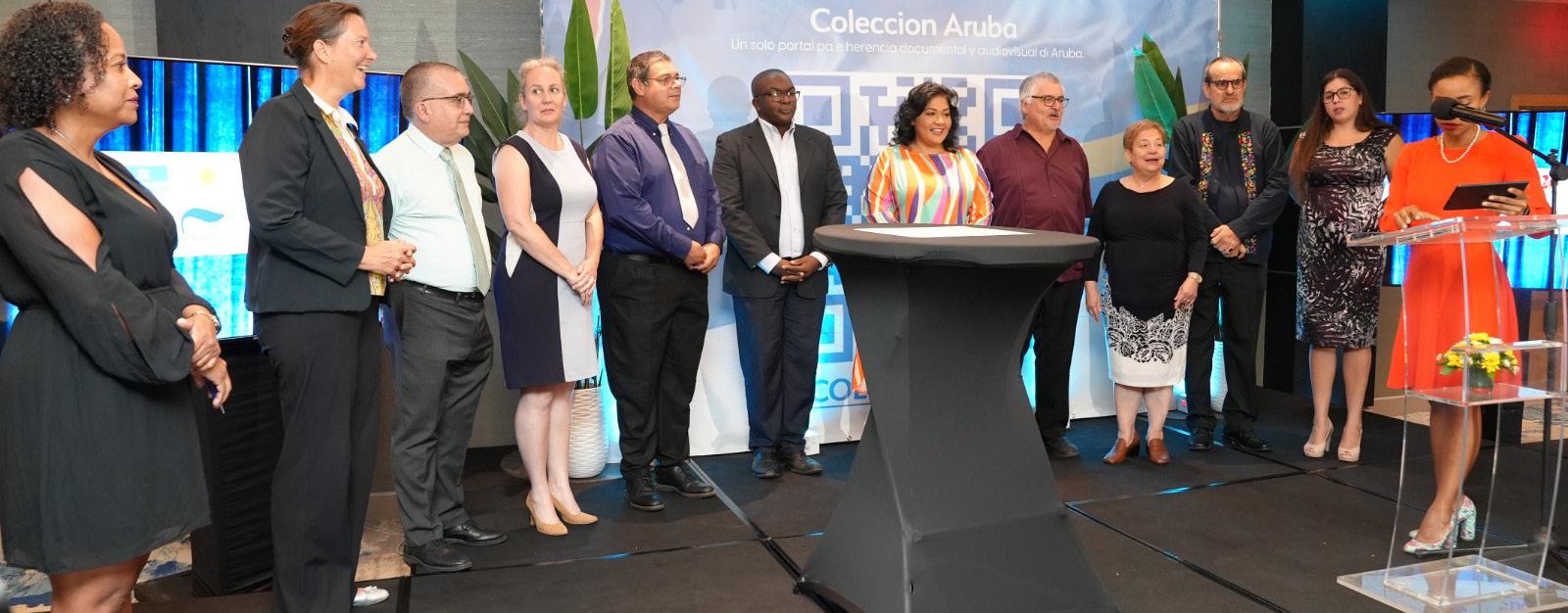 Durante ceremonia oficial di lansamento di Colccion.aw, Minister Xiomara Maduro y Prome Minister Evelyn Wever –Croes a hiba palabra den nomber di Minister Endy Croes. Minister Endy Croes tin enseñansa na pecho y a mustra esaki un biaha mas door di brinda aporte na e proyecto importante aki, un proyecto cu ta di gran balor pa nos studiantenan. E website Coleccion.aw ta un plataforma digital cu ta contene mas di 80 mil documento, entre otro, potret, video y corantnan bieu relaciona cu historia di Pais Aruba.
