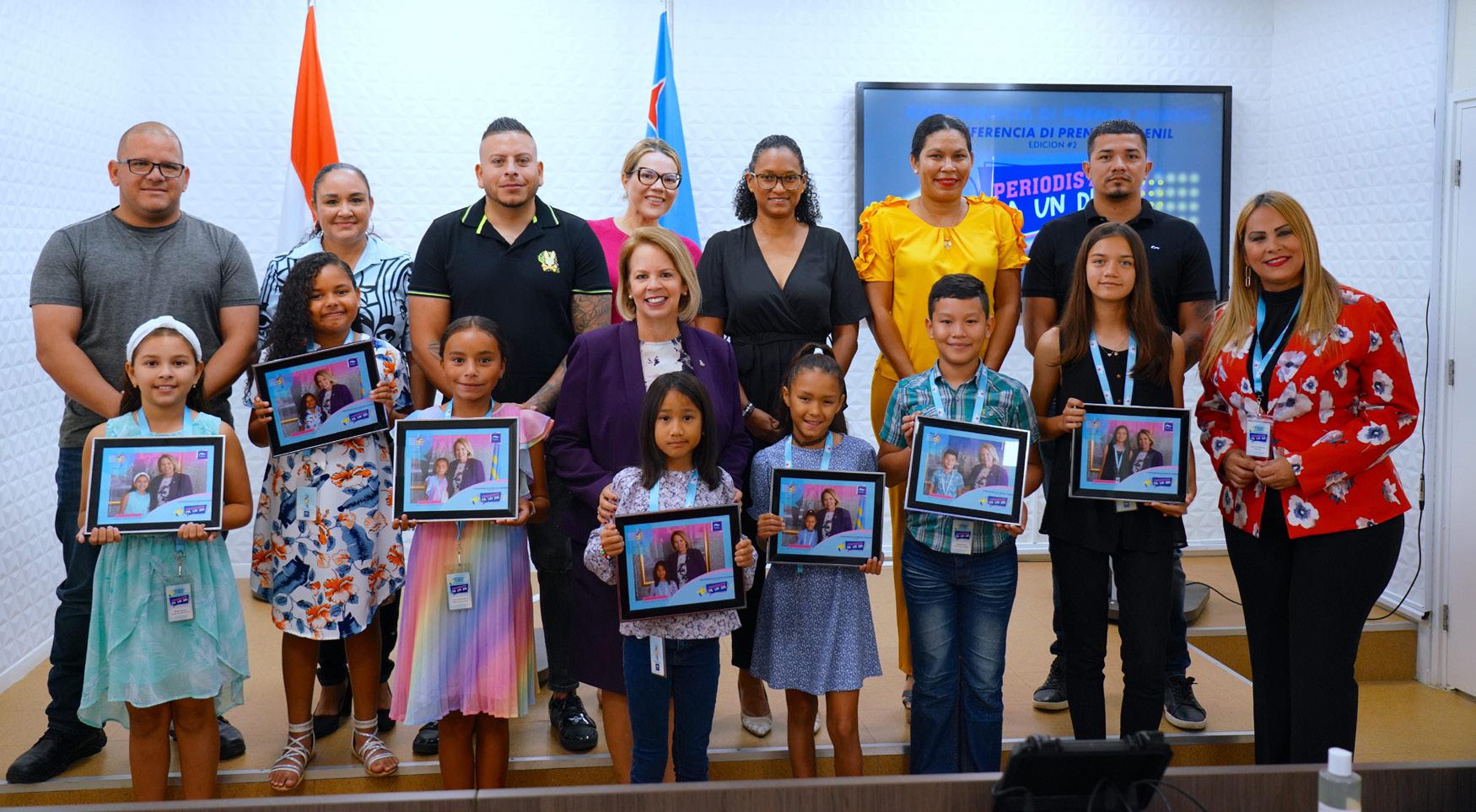 Diabierna atardi a tuma luga e ultimo Conferencia di Prensa Hubenil di ‘Periodista pa un Dia’ 2023 den sala di conferencia di prensa di Gobierno di Aruba. Un total di 31 mucha a participa y a siña conoce nos Premier di Aruba, Evelyn Wever-Croes un tiki mas dunando tambe asina pueblo conoce un tiki mas di bida, profesion, estudio, famia, hobby y deseo pa un miho Aruba di nos Prome Minister. Tambe e muchanan a conoce mas di cerca cu e trabou di prensa na Aruba. Otro siman diabierna, e muchanan cu a participa lo bishita TeleAruba pa wak kico tur TeleAruba ta haci riba e tereno di periodismo pa mantene nos pueblo informa y entreteni.