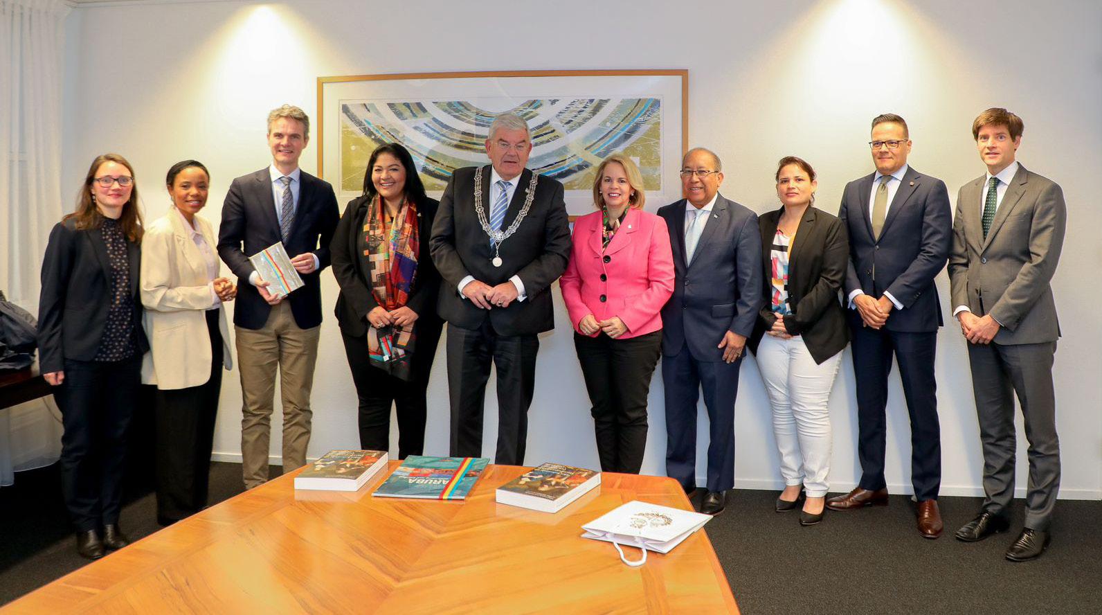 E siman tras di lomba Minister President y Minister di Finansa tabata na Hulanda pa reuni cu varios persona y instancia riba e situacion financiero di Aruba. E delegacion di Aruba tabata di bishita tambe cerca Burgermeester di Den Haag y alabes Presidente di Vereniging van Nederlandse Gemeenten (VNG) sr. Jan van Zanen. Pa Minister Maduro e tabata un placer pa bolbe topa cu sr. Van Zanen cu semper tin un 'warm hart' pa nos Pais.