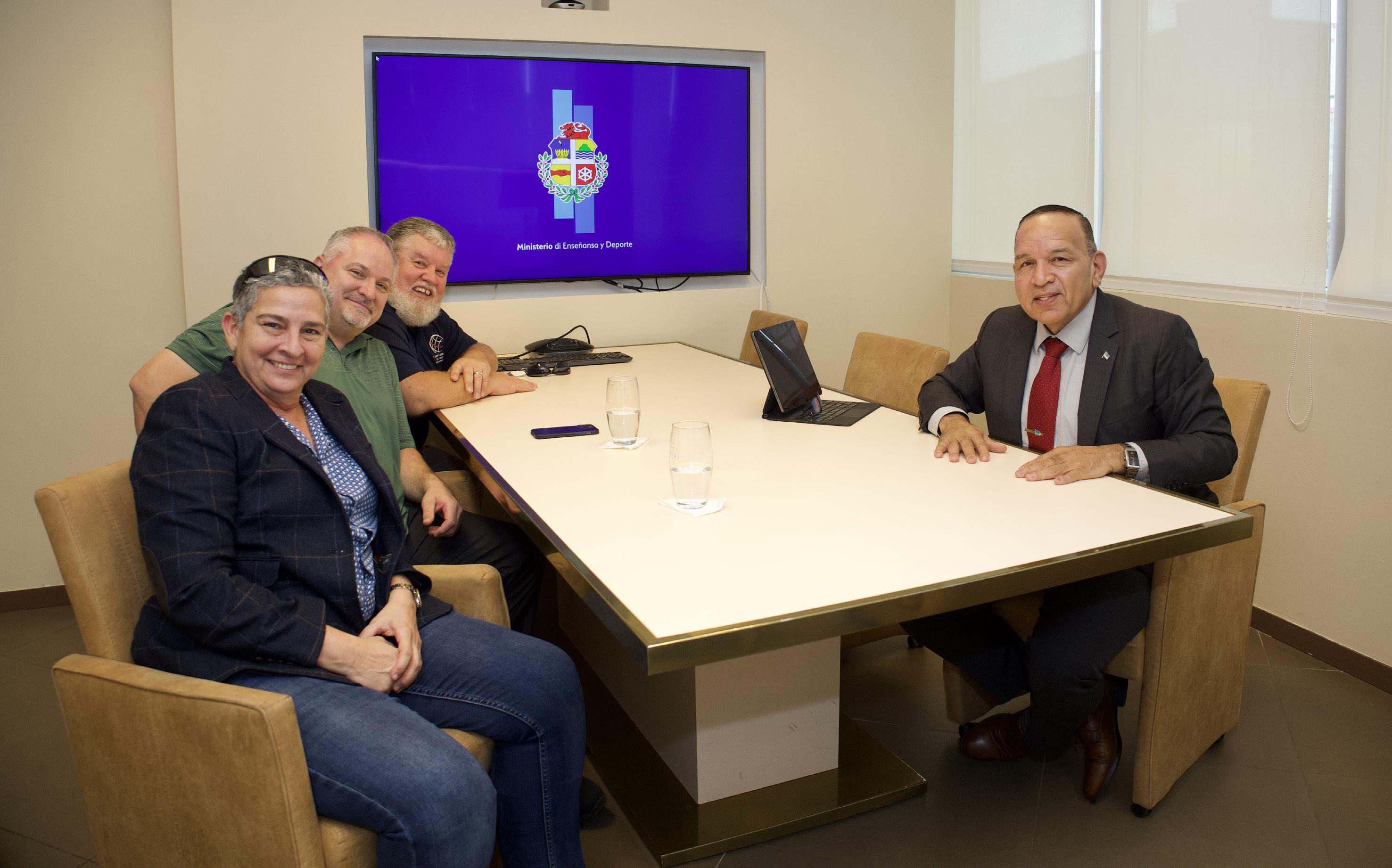 Recientemente den un esfera ameno Minister Endy Croes a ricibi bishita di sr. William “Bill” Edington di Kansas City, Merca. Tambe presente durante e reunion tabata sr. Brian Horn, coach di ekipo di Merca den e disciplina di bowling alabes ex hungado profesional bowling y sra. Izaira Mansur. Mester agrega cu Sr. Edington ta representa USA Athletes International alabes amigo pa hopi aña di nos Madatario di Deporte. Sr. Edington ta trece diferente deporte e.o. basketball, softball, futbol, bowling etc y hungadonan na diferente parti di mundo e.o Aruba.