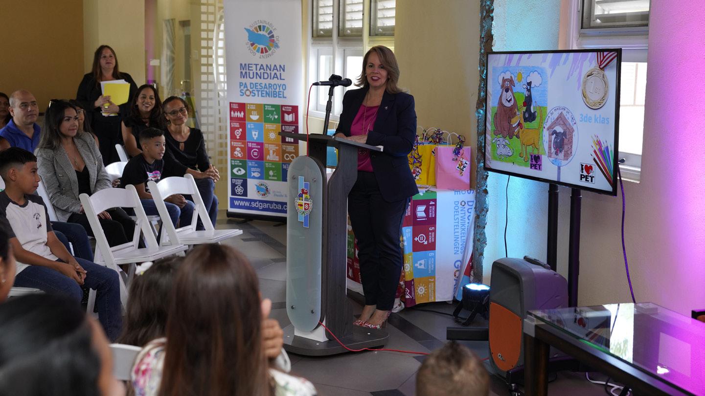 Prome Minister, na su turno a dirigi su mes na e muchanan presente gradiciendo nan pa nan participacion y splicando e importancia pa cu cuido y trato di nan mascotanan. Tambe el a remarca cu aki na Aruba hopi hende ta gusta y stima nan mascotanan hopi ora nan ta chikito pero ora nan bira grandi ya no ta haya e amor y atencion debido mas. Ta importante na momento cu un mucha pidi nan mayornan pa un mascota pa nan keda stime y cuide mescos, evitando asina cu e mascotanan ta caba riba caya flaco y bandona.