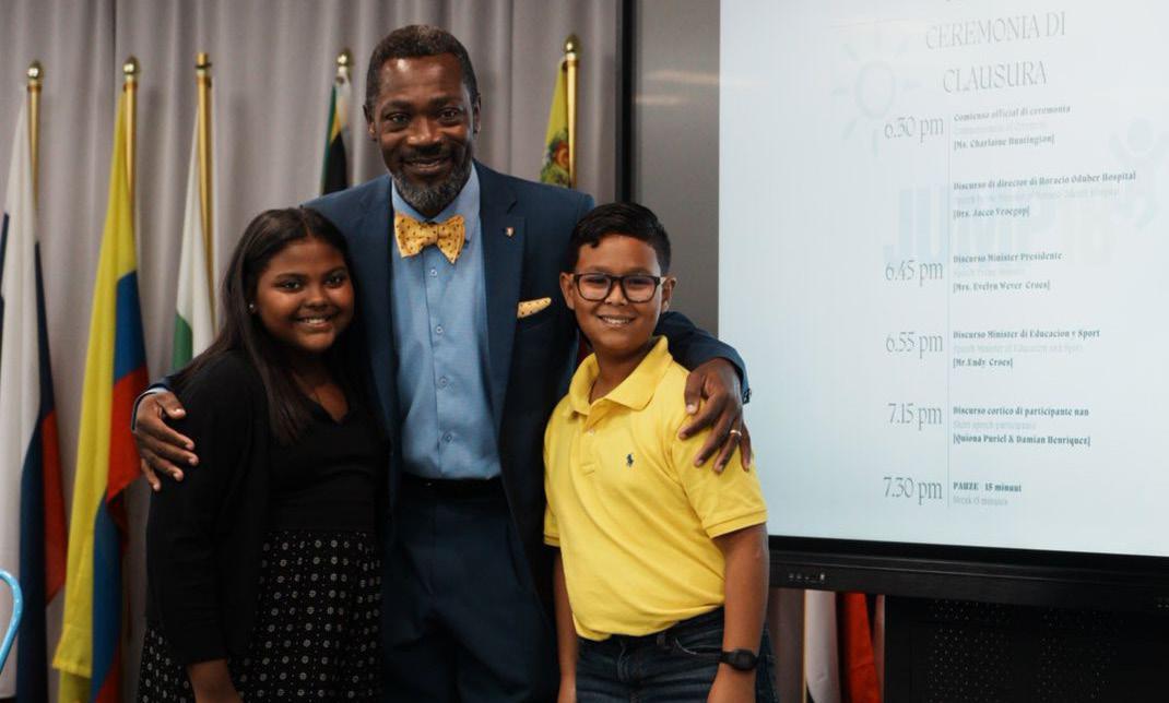 encuentro aki. Tambe mi ta gradici e hobennan cu a bin y e mayornan cu tambe a coopera pa esaki bira realidad. Mi lo hiba e encuentro aki como un bunita recuerdo y lo traha riba algun punto hopi importante cu a wordo treci den bienestar di e hobennan”, Prome Minister a expresa.