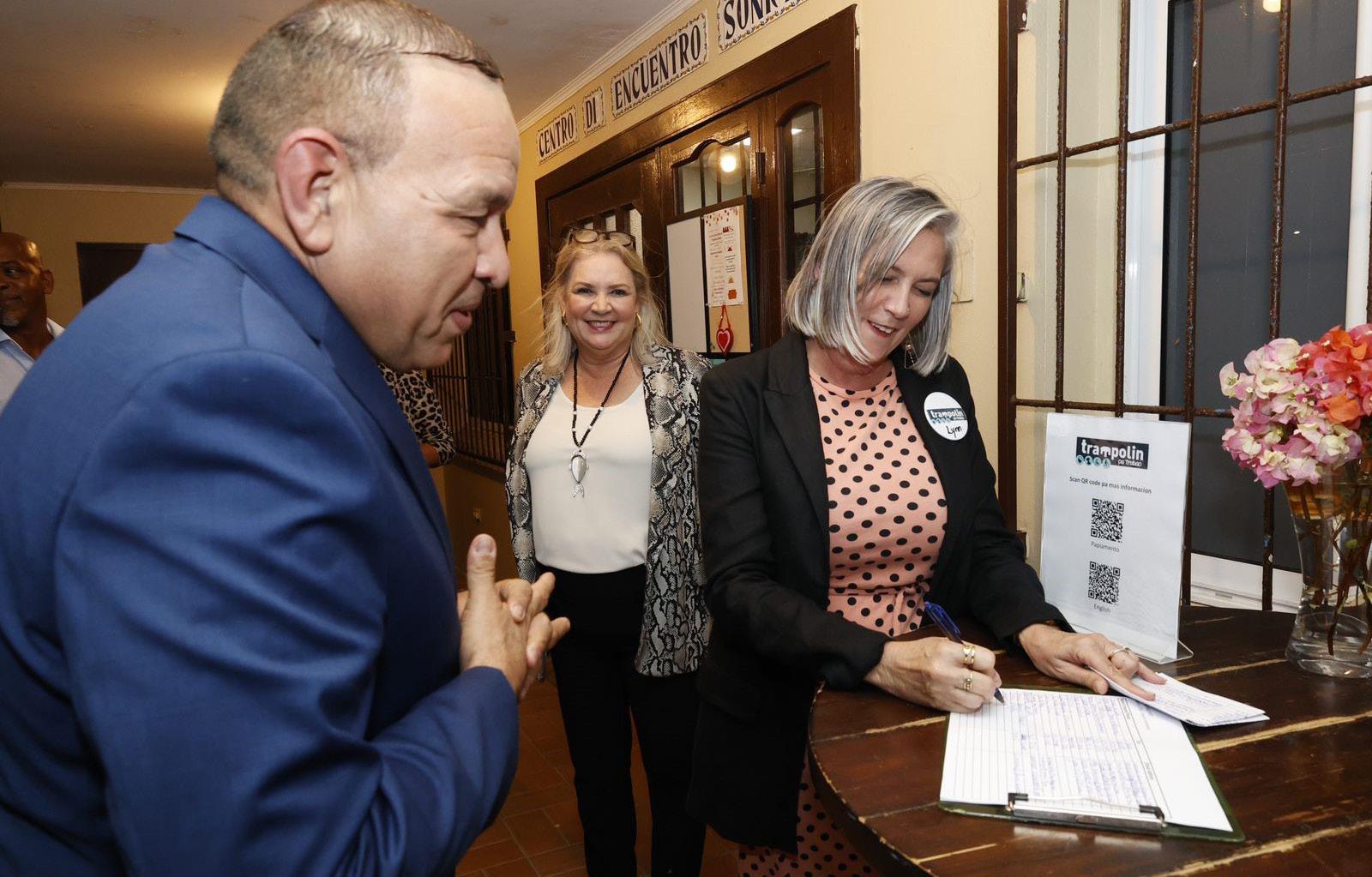 Diaranson anochi, Minister Endy Croes a atende un charla informativo na Centro Sonrisa. E evento a wordo organisa pa Trampolin pa Trabao hunto cu Directie Sociale Zaken, Flexo Manpower y Medwork. Presente tabata mayor-, companiaof instancianan interesa pa traha cu personan cu limitacion. Durante e anochi informativo Sr. lionel Rumnit, jobcoach a duna diferente presentacion pa stimula mayornan pa nan yui participa den e proyecto. E meta di e evento ta inclusion di hende cu limitacion den mercado laboral. Un cliente cu a haya un trabou a comparti su experencia bunita cu esnan presente.