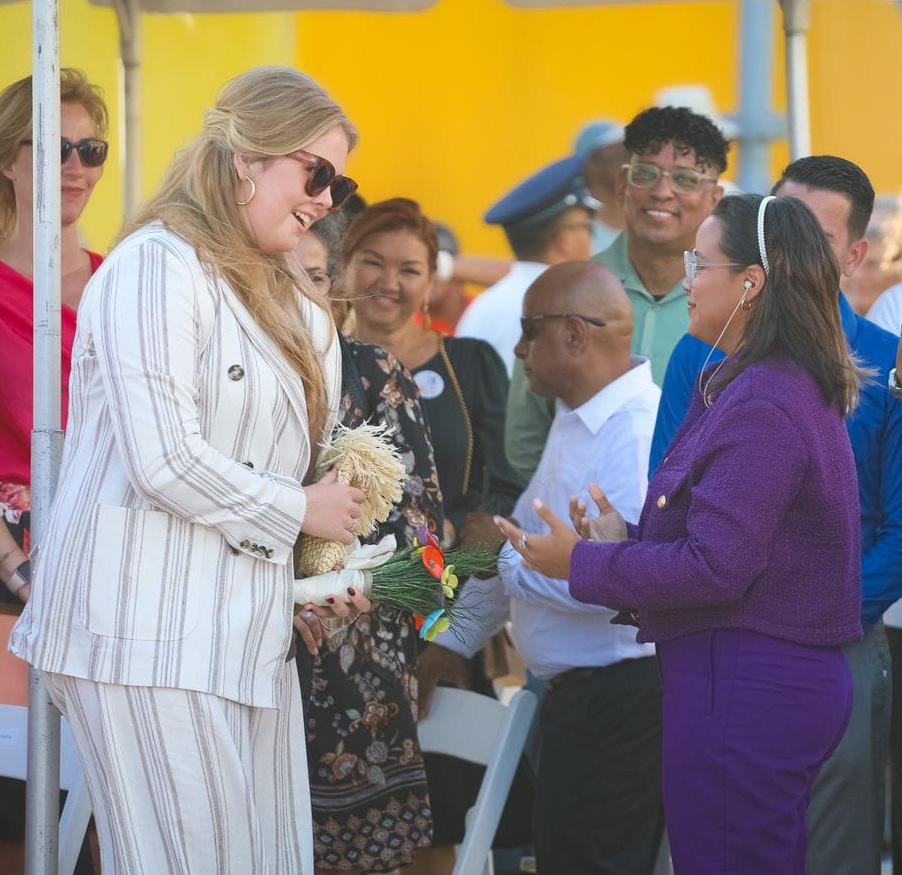 Minister Maduro tambe tabata tin palabra di elogio pa Kay: ’Danki Kay, pa bo bunita palabranan, bon escohi, pa a para como un representante di e Generacion Z, mescos cu Prinses Amalia y pa a laga bo curason papia atraves di cada palabra cu bo a pronuncia. Aruba ta hopi orguyoso dibo.’