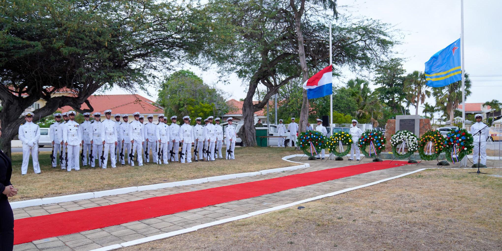 Prome Minister Evelyn Wever-Croes, durante su discurso, a pone enfasis riba e echo cu e dia aki no ta recorda solamente militarnan pero tambe tur ciudadano cu a perde nan bida durante e di Dos Guera Mundial. E sacrificio di tur e personanan aki no por bay en vano. Cada ciudadano di Aruba y mundo henter por haci e compromiso pa ta mas tolerante cu otro, tin mas simpatia y empatia cu otro y comprende otro miho, respetando derecho di otro ya cu asina so por logra paz.