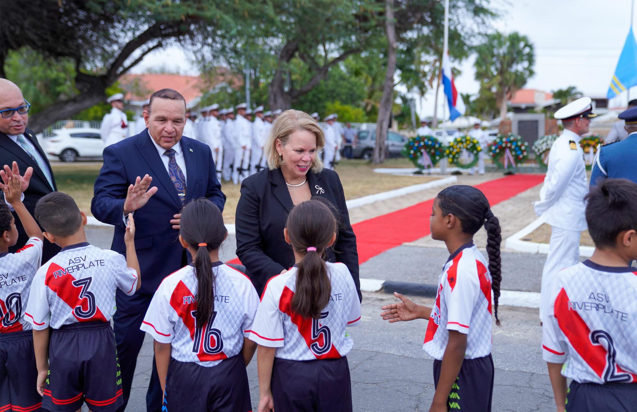 Durante e ceremonia protocolar na honor di Rey WillemAlexander, Presidente di Parlamento di Aruba mr. Edgard Vrolijk a hiba palabra y a felicita Su Mahestad den nomber di Pueblo di Aruba. Despues a sigui un bunita show di baile di “Kids & Youth in Action” bou direccion di Sra. Deborah Boekhoudt y coreografo Sra. Raisa Montilla. Su Excelencia Gobernador di Aruba, Alfonso Boekhoudt a otorga e premio Copa B. Felipe Tromp 2024 na e futbolista Ethan Geerman y landado Braynsly Dirksz. Premio Estimulo a bay pa Kailen Wouters y Dalton Conijn. E mainta a clausura cu un bunita desfile di diferente grupo di scout. Concluyendo, Minister Endy Croes ta gradici Comision Celebracion Dianan Nacional pa organisa e bunita Ceremonia Protocolar di Dia di Rey.
