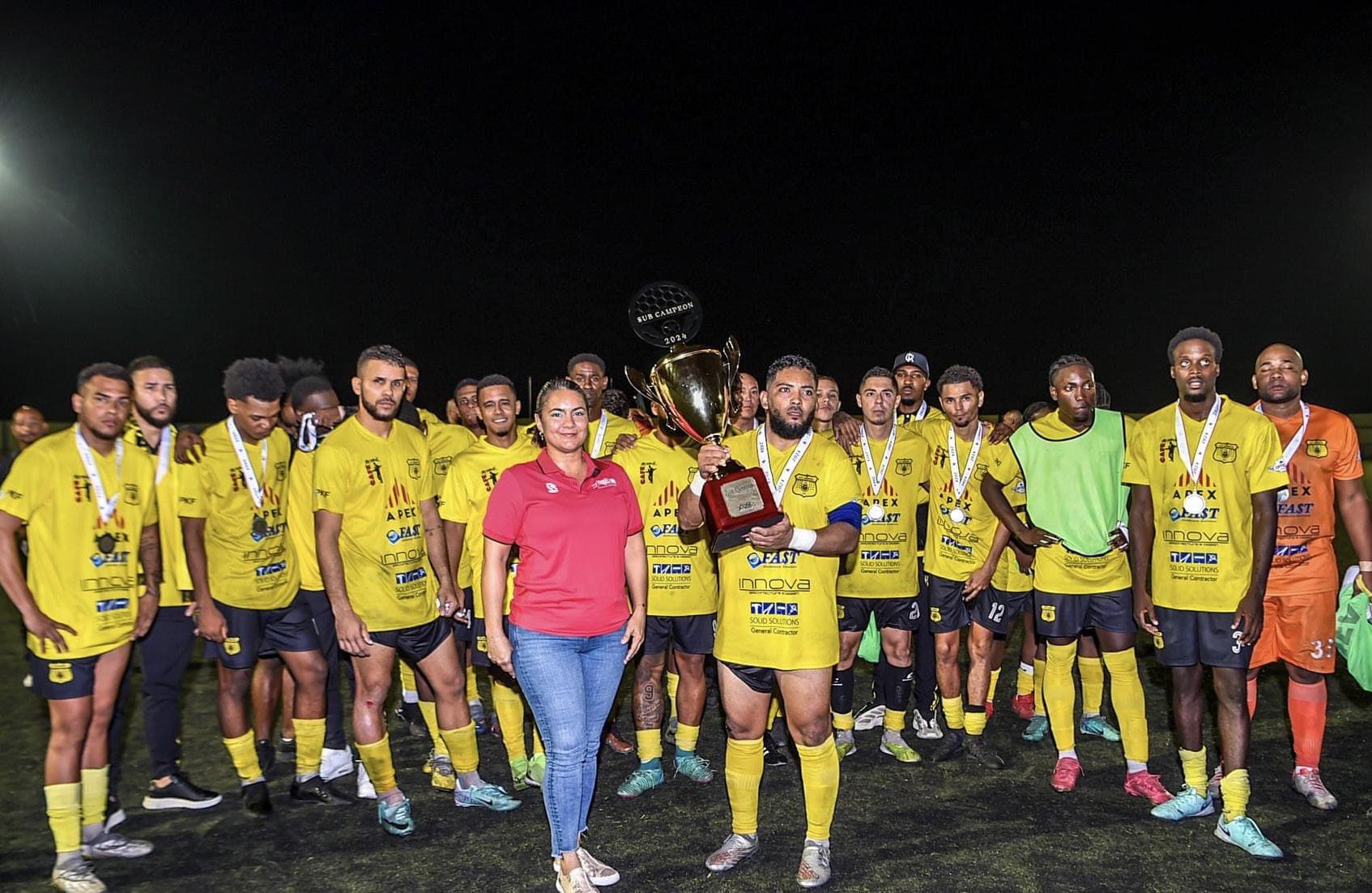 E gran partido final a termina cu e score di 1- 1. Despues di a hunga tempo extra a bay over na tiro di pinalti, unda cu S.V. Britannia a anota 5 y Dakota 4. Na final di e partido e mandatario di Deporte a entrega e trofeo di campeon na S.V. Britannia cu a titula campeon Liga Oro di Aruba 2023-2024. Pabien na S.V. Britannia y pabien na Dakota, kendenan a sali sub campeon den un tremendo final di futbol.