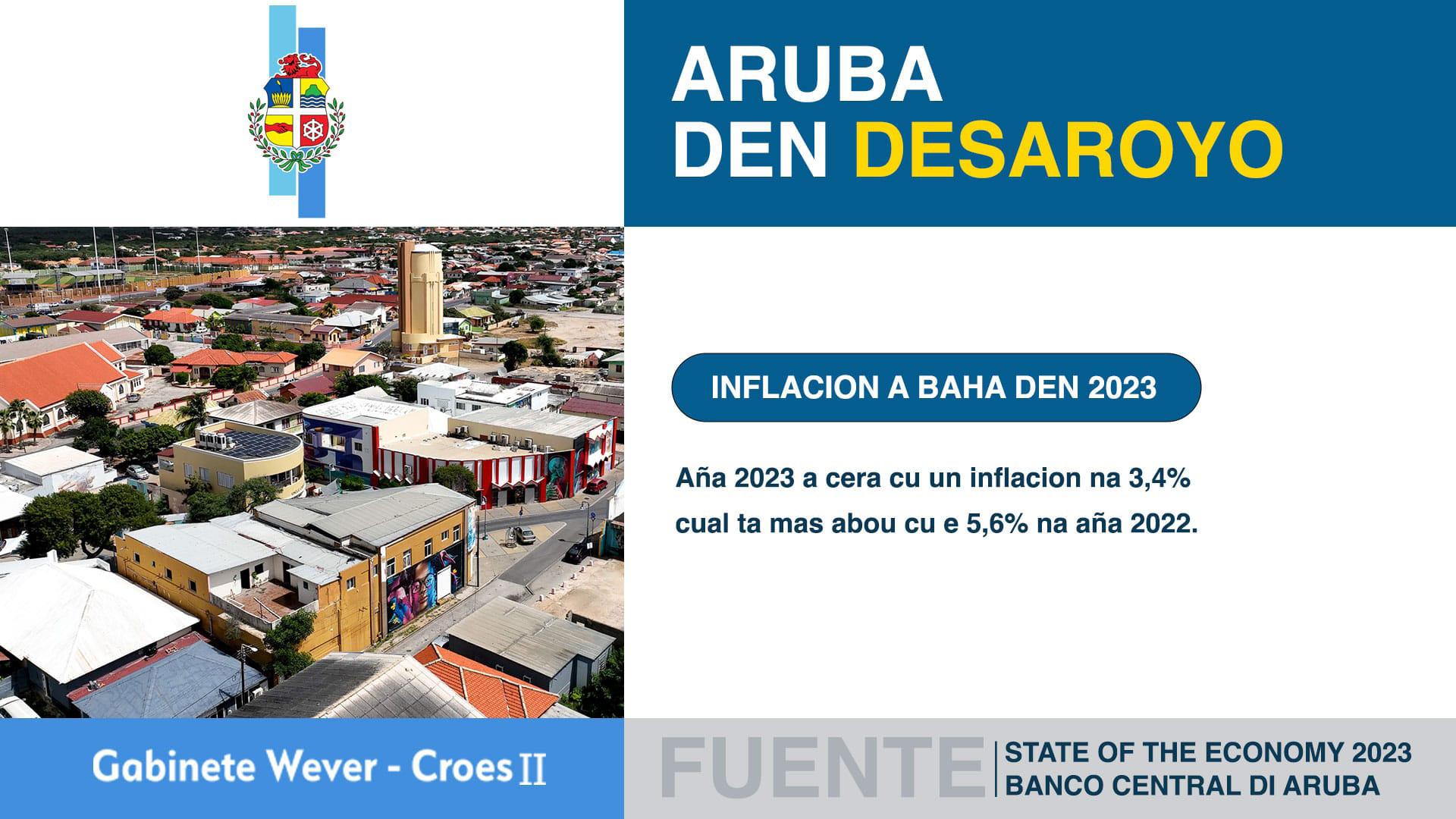 Esaki ta un otro punto importante cu Banco Central a señala. Inflacion di 2023 a baha na 3,4 porciento compara cu e 5,6 porciento di aña 2022 cu ta un reduccion substancial di inflacion.