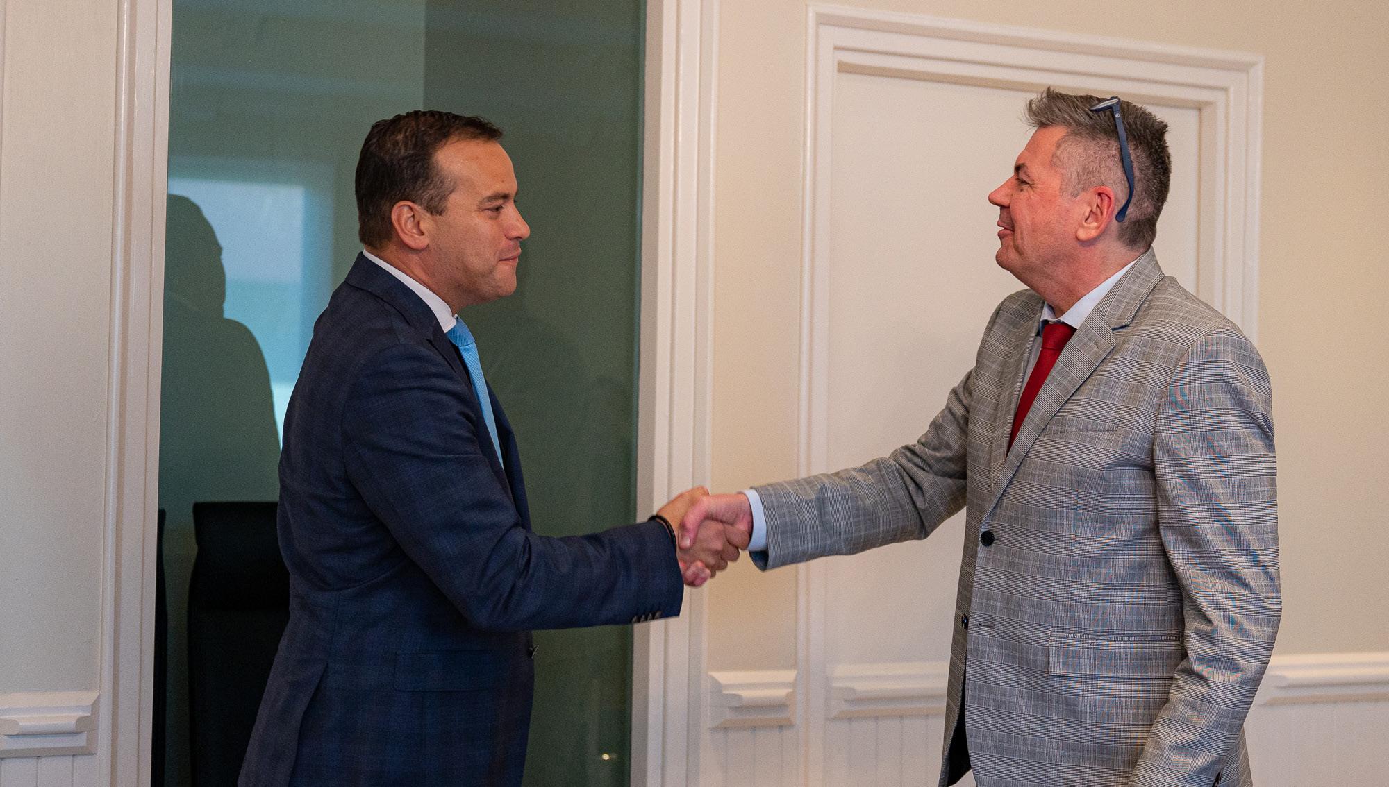 Recientemente embahadora di Estados Unidos na Hulanda Razdan Duggal a haci un bishita oficial cerca Minister Plenipotenciario di Aruba mr. Ady Thijsen. Embahadora Duggal a wordo acompaña pa advisor politico di e embahada di Merca Byron Hartman. Esaki ta prome biaha cu un embahador Mericano ta haci un bishita na Arubahuis y tin un encuentro cu e Minister Plenipotenciario di Aruba.