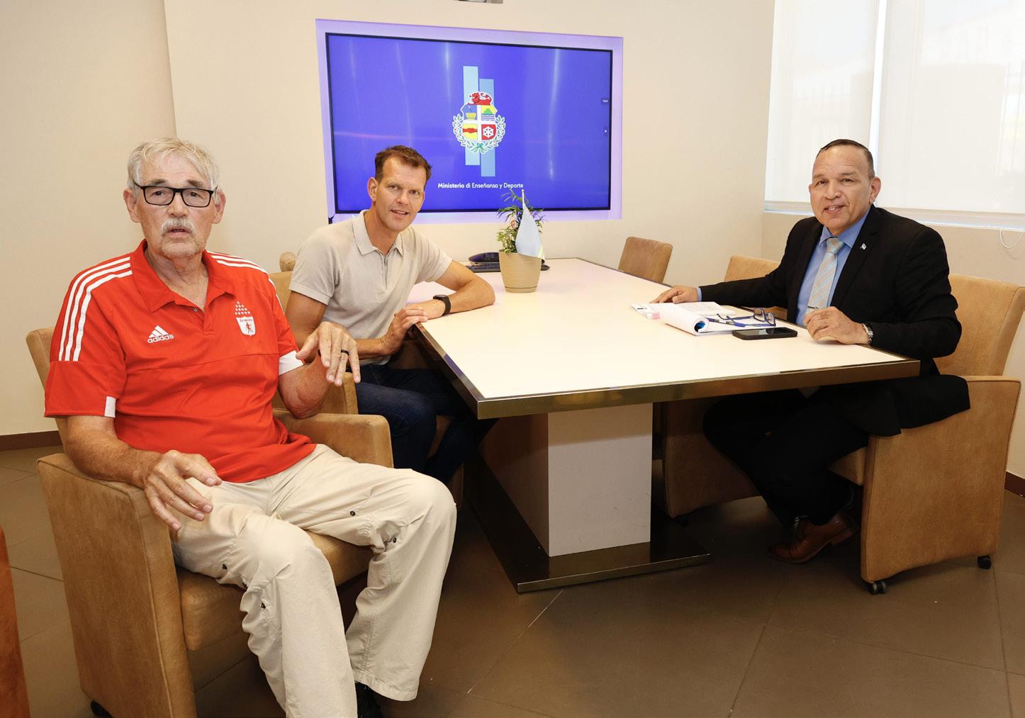 Siman pasa, Minister Endy Croes a reuni cu Presidente di Sport for Youth Foundation Aruba, sr. Leo de Hertog y sr. Jan de Blij di Fabriek Janssen & Fritsen ta un partner di Sports for Children di Hulanda. Sport for Youth Foundation Aruba ta un organisacion cu ta trece diferente material deportivo segunda mano for di Hulanda pa Aruba. Sport for Youth Foundation Aruba ta traha hunto cu Sports for Children na Hulanda, cual ta haci entrega di e materialnan deportivo segunda mano aki completamente gratis. Unabes cu Sport for Youth Foundation Aruba ricibi e materialnan aki, ta haci entrega di esakinan na diferente scol na Aruba.