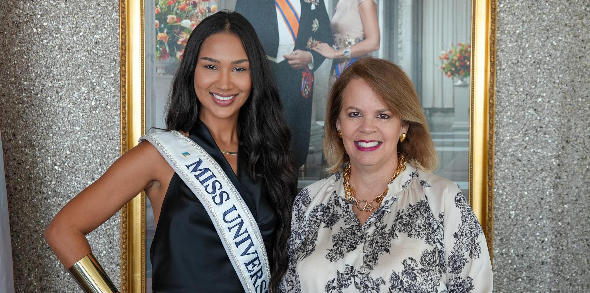 Dialuna mainta, Prome Minister Evelyn Wever-Croes a ricibi bishita di Miss Universe Aruba, Karol Croes na unda cu señorita Croes a informa Prome Minister di su representacion pa Aruba dia 18 November proximo den e prestigioso certamen di beyesa na San Salvador.