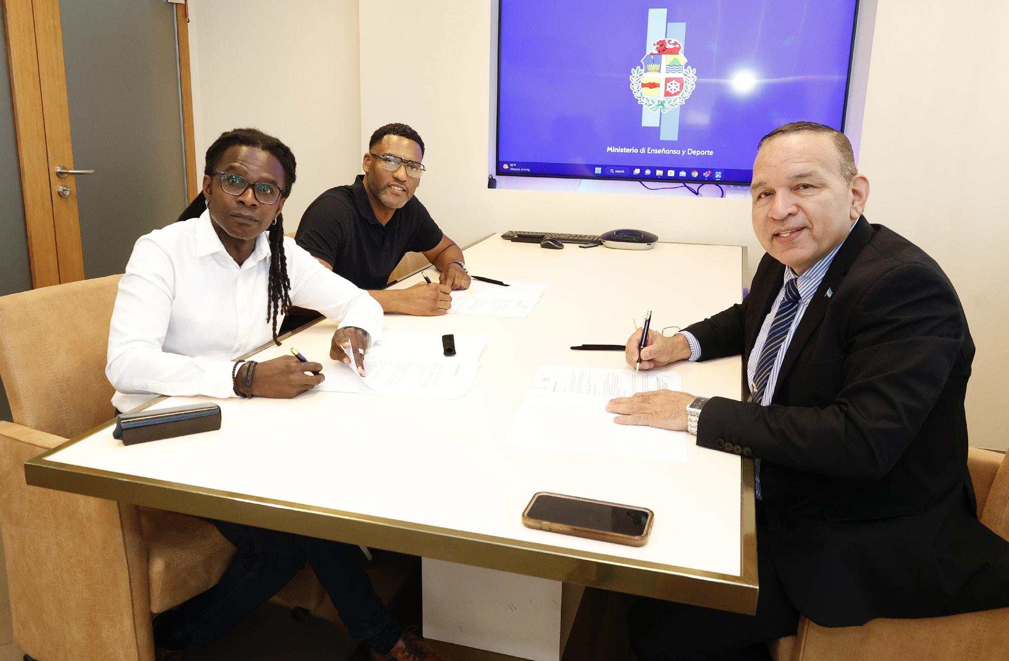 Dr. Francio Guadeloupe ta gradici Minister Endy Croes, kende a firma un contracto pa asina nos por tin un di dos Arubiano trahando den e proyecto di “Climate Challenges”, esta dr. Gregory Richardson. Dr. Guadeloupe a sigui bisa cu e desafio climatico ta hopi importante pa Aruba, nos ta yama e desafio climatico y no cambio climatico, mirando cu e ta un reto pa Aruba wordo reforma. Reforma den termino di adikiri un desaroyo sostenibel. E investigacion aki ta basa riba e desaroyo sostenibel di e hubentud. Con nos ta segura cu e futuro Arubianonan, e hobennan, e muchanan por biba riba un isla cu lo permanece sostenibel, permanece habitabel y un luga unda cu e personanan por florece. Minister Endy Croes ta desea dr. Richardson hopi exito cu e investigacion.