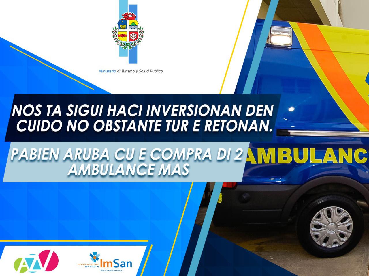 Aña 2022 tabata un aña cu hopi reto den salud publico caminda mester a sosode varios recorte. Sin embargo danki na e “Exit Strategy”, Aruba a conoce un recuperacion economico accelera cu a surpasa tur expectativa. Esaki a trece e espacio financiero cu a haci posibel cu AZV por a financia e compra di dos ambulance nobo. Si tur cos cana segun plan Aruba lo ricibi e dos ambulance nan aki den e tercer cuartal di 2023.