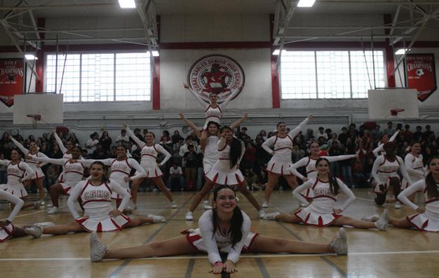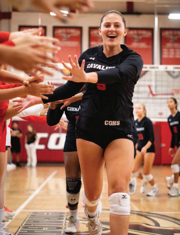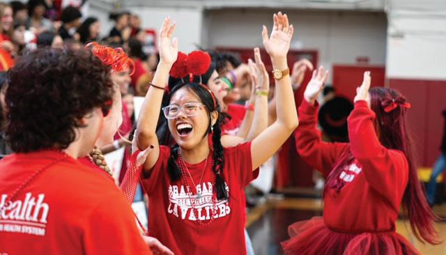 CAVALIER PRIDE: On Sept. 13, during the frst pep rally of the year, senior Tiffany Beh, adorned in her spirit gear, celebrates from the stands with her peers.