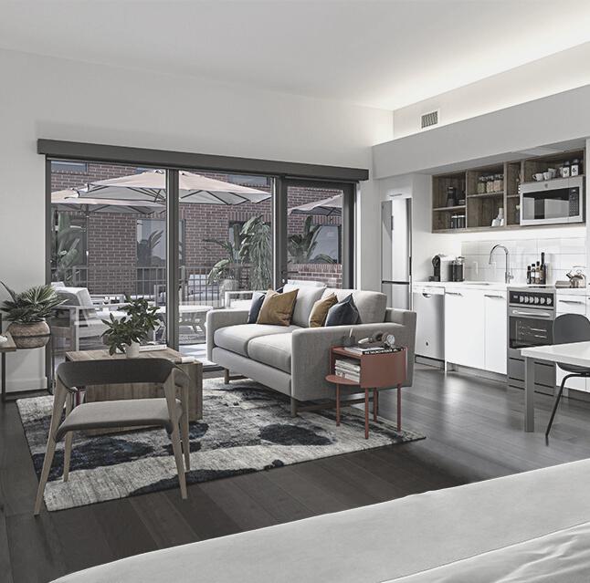 The Flats is where uncompromised form meets efficient functionality, in European-inspired studio, one and two bedroom apartments. These residences thoughtfully deliver the space you need and the features you want.
