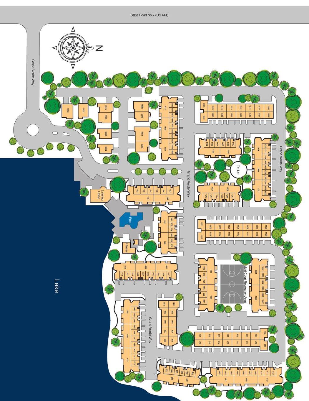 • The mailboxes for buildings 3, 4, 5 & 6 are located by building 4, on the west side of the building in between 3 and 4, by the lake.