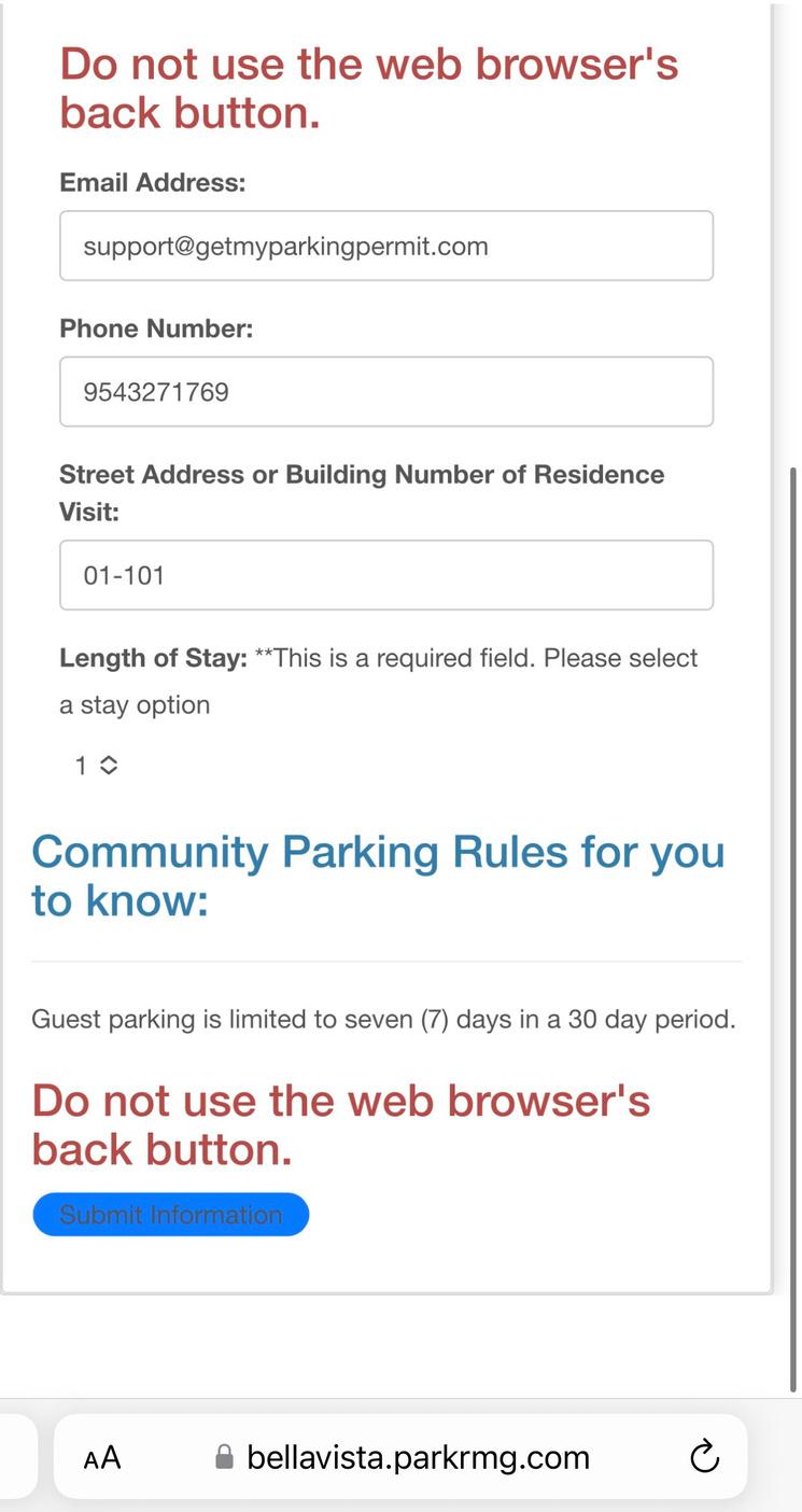 (Guests or residents can register the guest vehicle.)