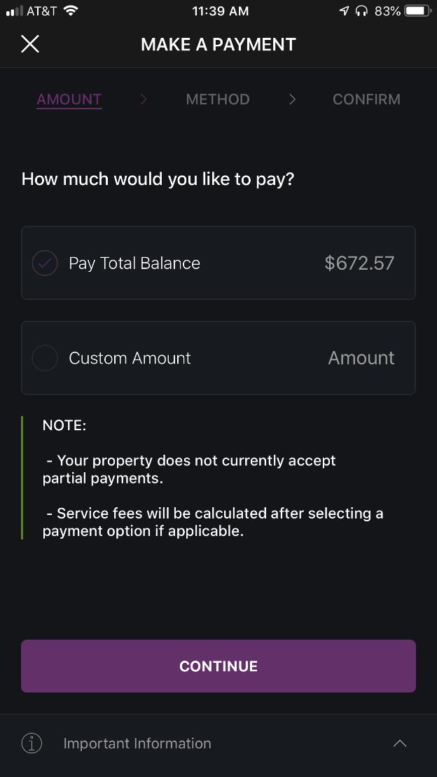 Step 1- Choose method of payment. Step 2- Choose total amount you wish to pay.